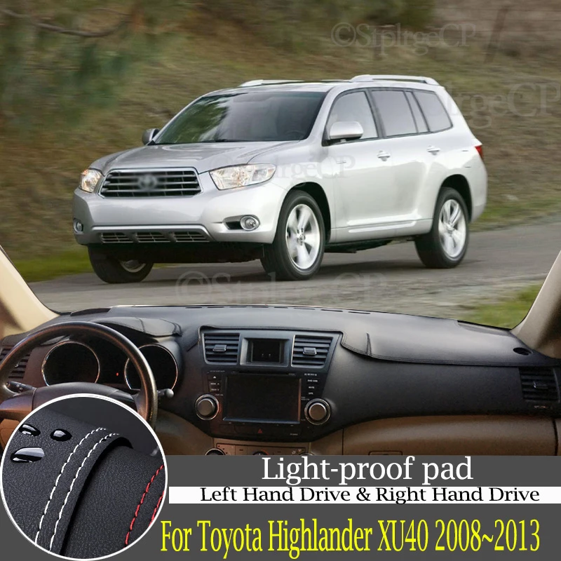 Качественная кожаная защитная накладка для приборной панели и светонепроницаемая Накладка для Toyota Highlander XU40 2008 2013, аксессуары для тюнинга автомобиля