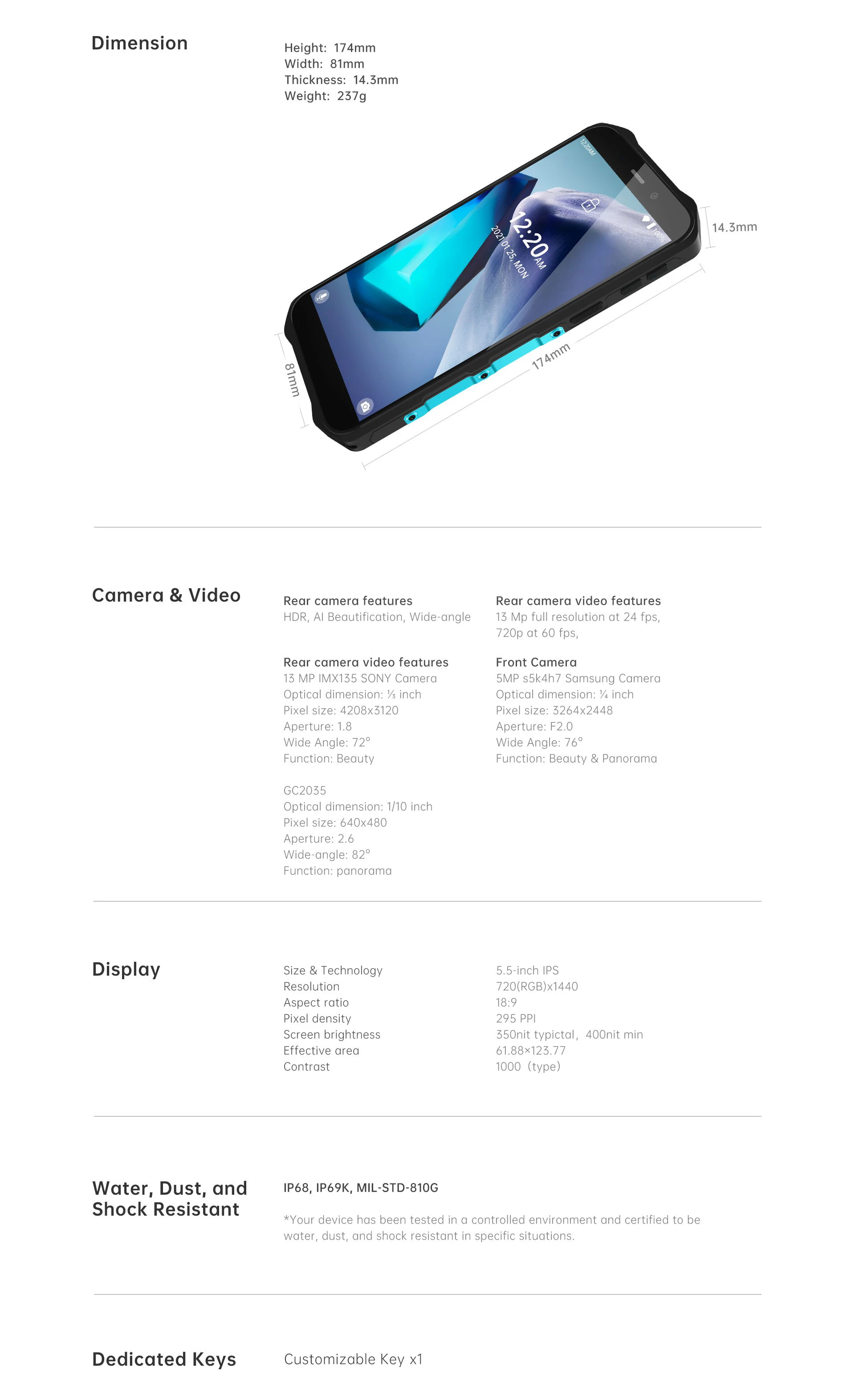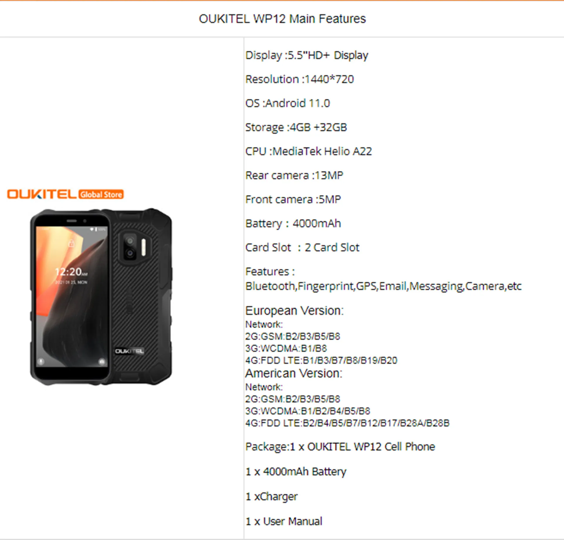 OUKITEL WP12, 5,5 дюйма HD +, Android 11, Helio A20, 4 Гб, 32 ГБ, ч...