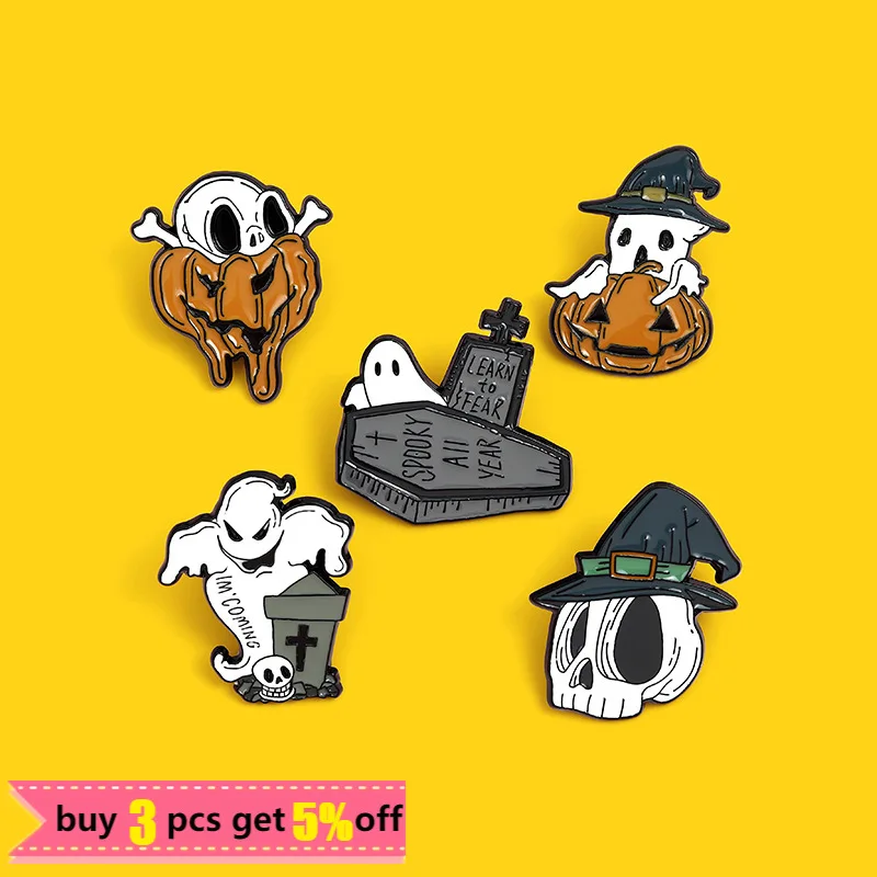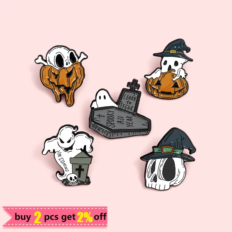 Эмалированные булавки на Хэллоуин, скелет, череп, тыква, призрак, могила, гроб, брошь на лацкан, значок в готическом стиле, бижутерия, подарки для друзей