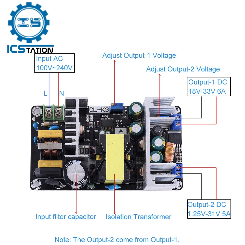 AC-DC 180 Вт импульсный источник питания 5 в 12 В 24 В 4A 5A Регулируемый трансформатор с двойным выходным напряжением SMPS, блок питания