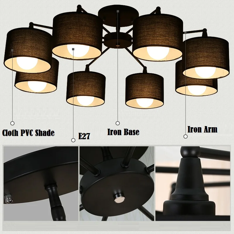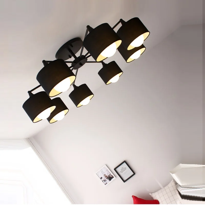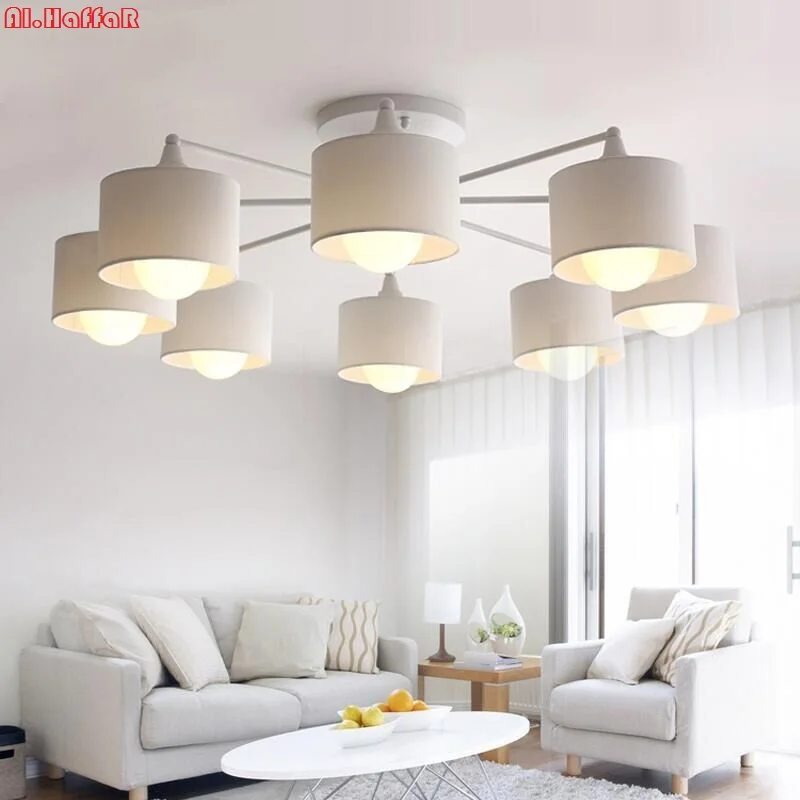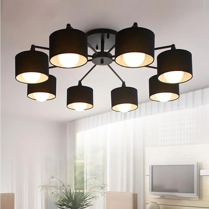Современные светодиодные потолочные люстры белогочерногозолотогосеребряного цвета E27 с абажуром, простые креативные осветительные приборы для гостиной