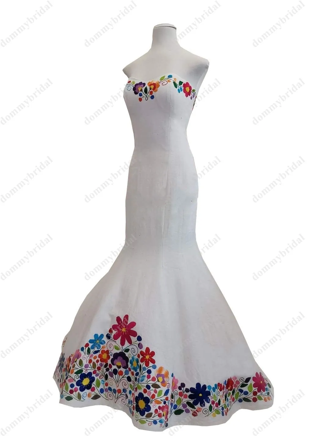 Женское свадебное платье с вышивкой в виде цветных цветов