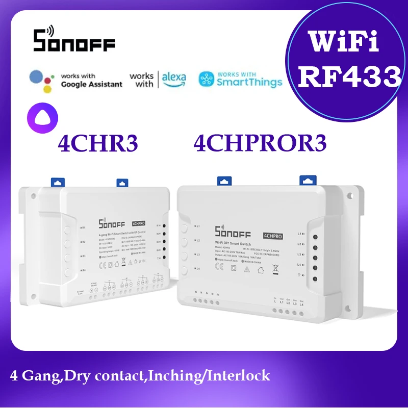 Смарт-переключатель SONOFF 4CHR3 4CHPROR3 4-gang4 Way Wifi 433mhz RF Control Support Alexa Google Smartthings Яндекс Alice Smart Home