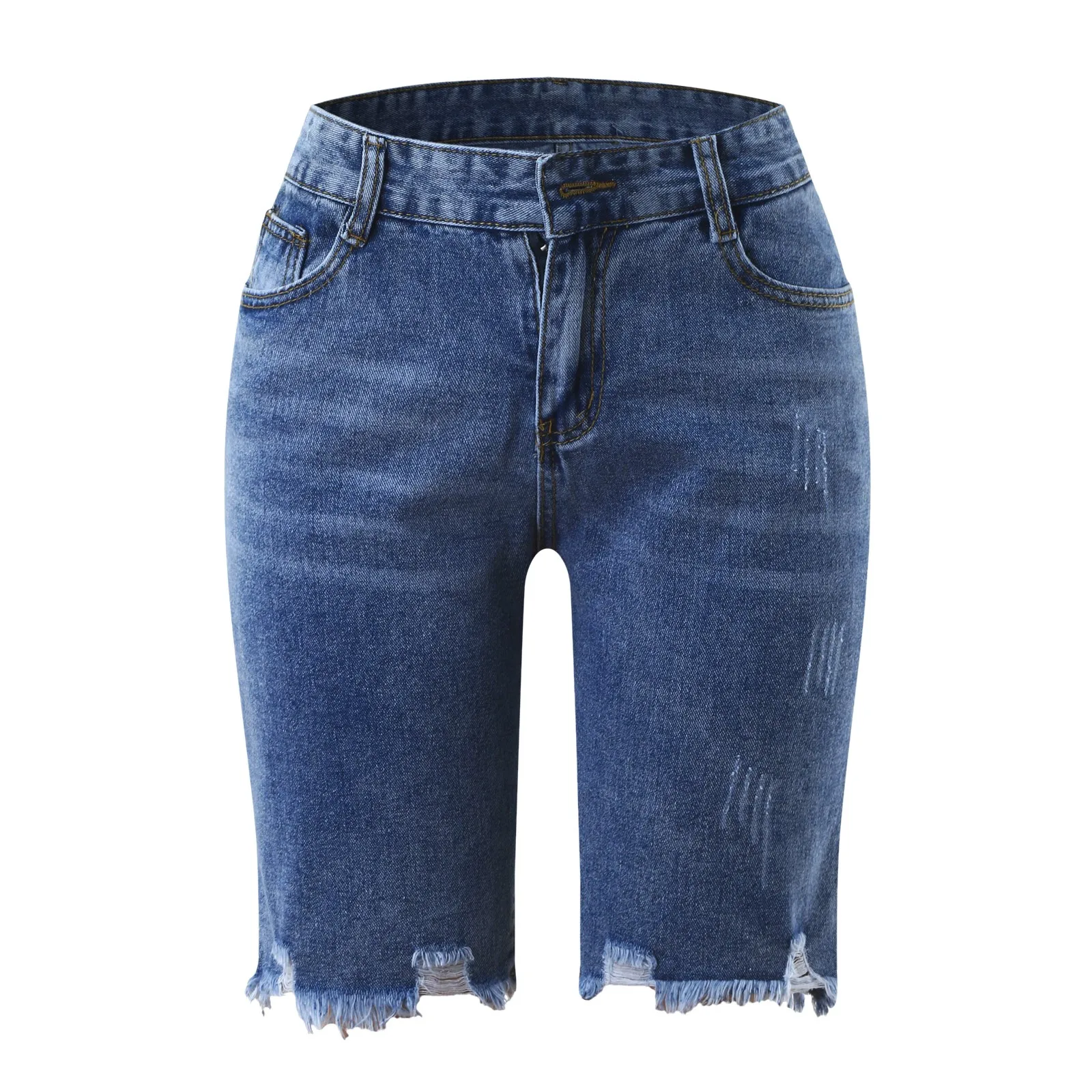 Джинсовые зауженные джинсовые шорты-бермуды с высокой талией, новинка размера плюс, женские модные облегающие джинсовые шорты с кисточками, пикантные женские летние потертые