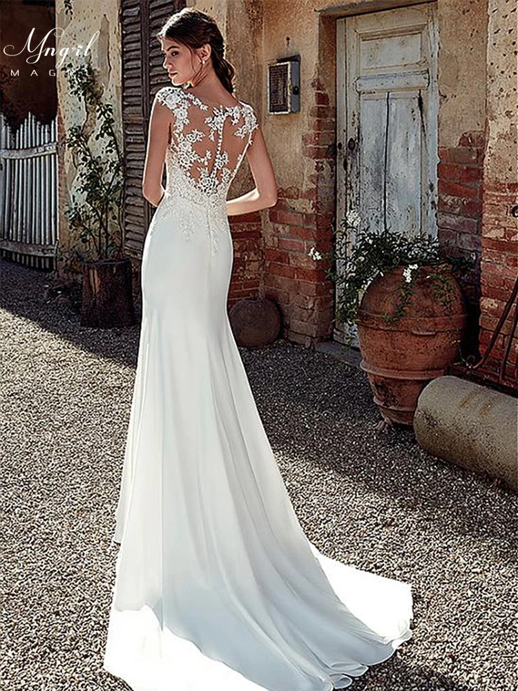 Свадебное платье MNGRL в стиле ретро, роскошное белое кружевная, шифоновая, без рукавов свадебное платье русалки с 3d цветами и V-образным вырезом, размера плюс платья невесты