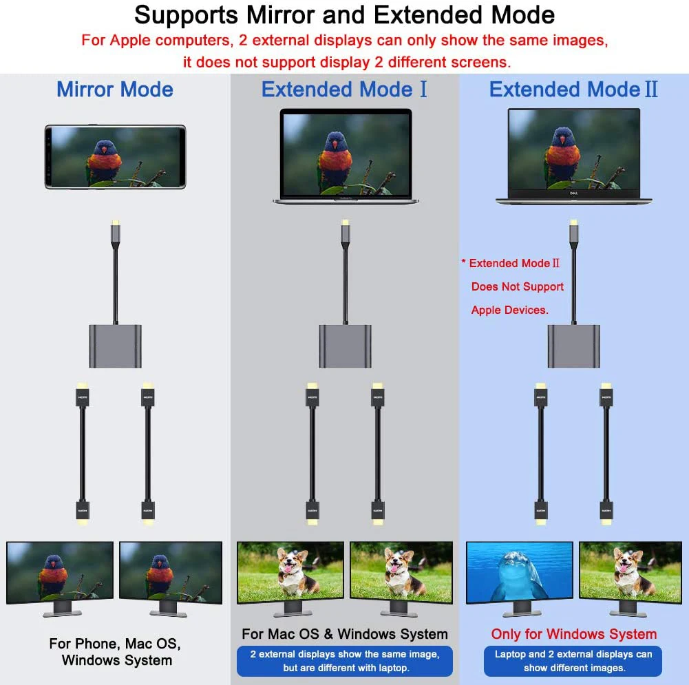 Type chdmi-совместимый 4K USB C к двойному HDMI USB 3,0 PD зарядный...