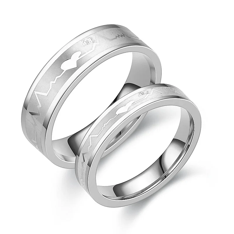 Романтическая пара световой кольцо ECG серебро Цвет из нержавеющей ...