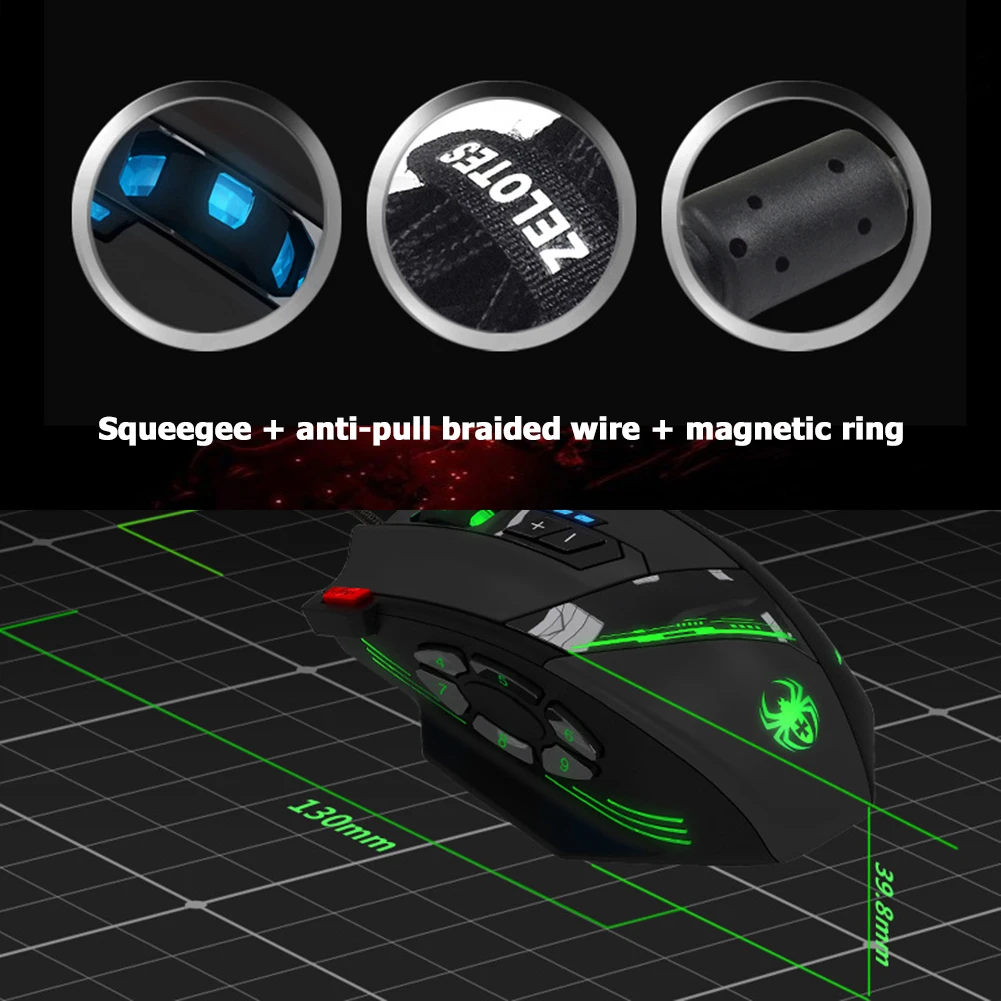 USB-мышь компьютерная ZELOTES, 12 программируемых кнопок, 4 оптичес...
