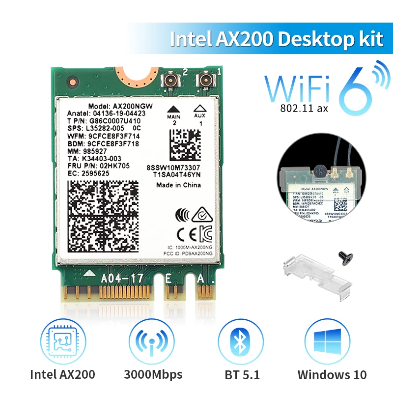 Номер моделиIntel AX200 M.2 Dekstop Kit