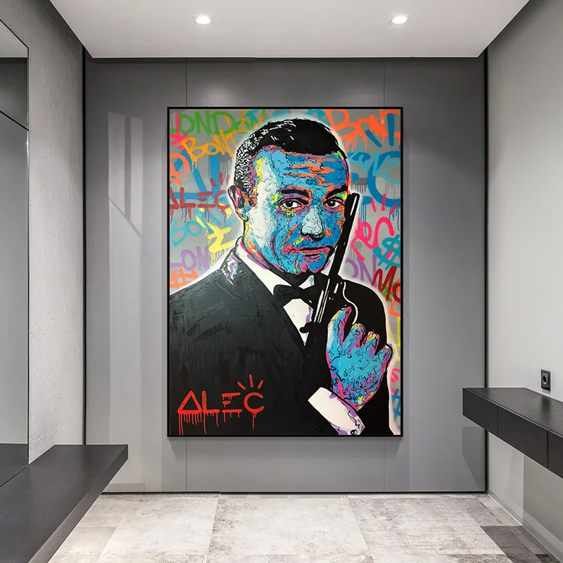 Абстрактное искусство Джеймс Бонд, постеры и принты, настенные картины для гостиной, домашний декор, портрет граффити