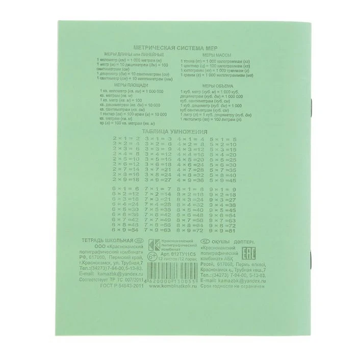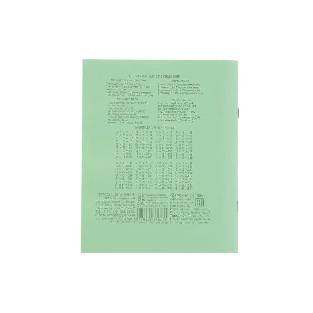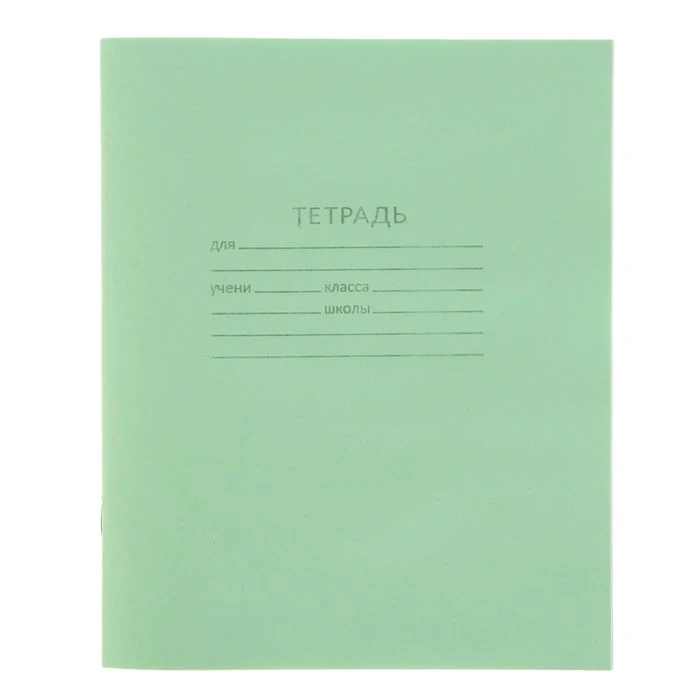 Тетрадь 12 листов в клетку Зелёная обложка, офсет 1, 58-63 гм2, белизна 90%