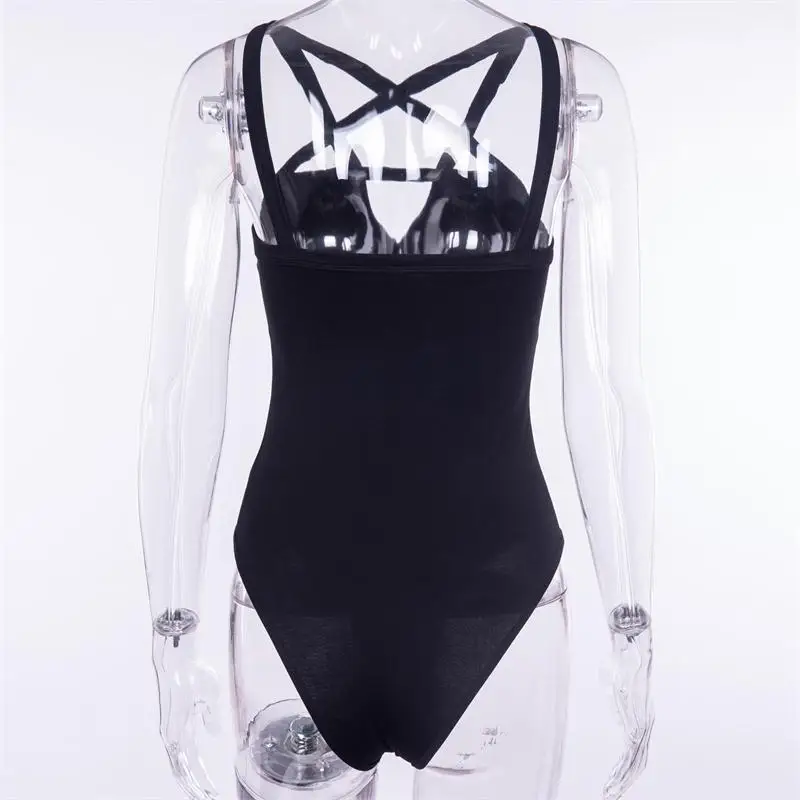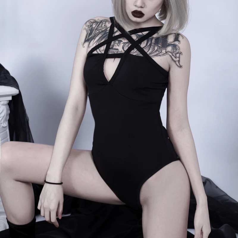 Боди женское черное, с вырезами, в готическом стиле, с открытой спиной