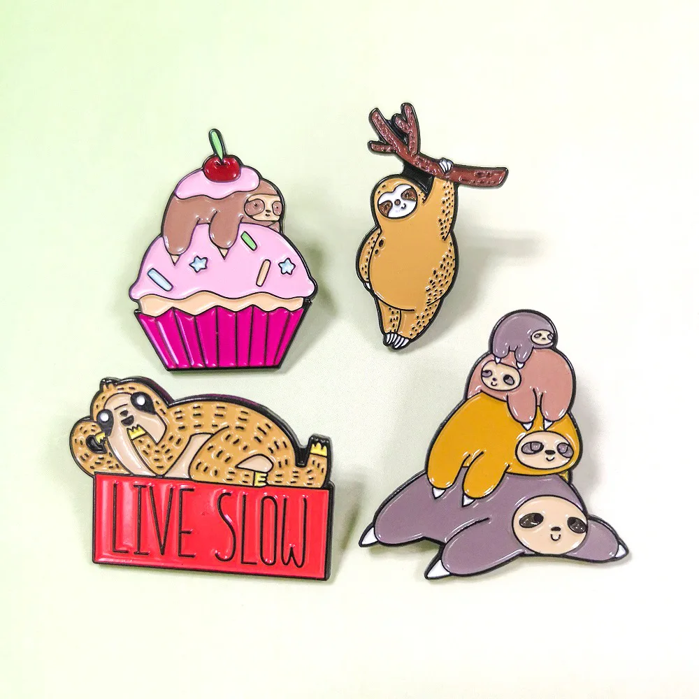 Брошь из металлического сплава с изображением милых животных, Ленив...