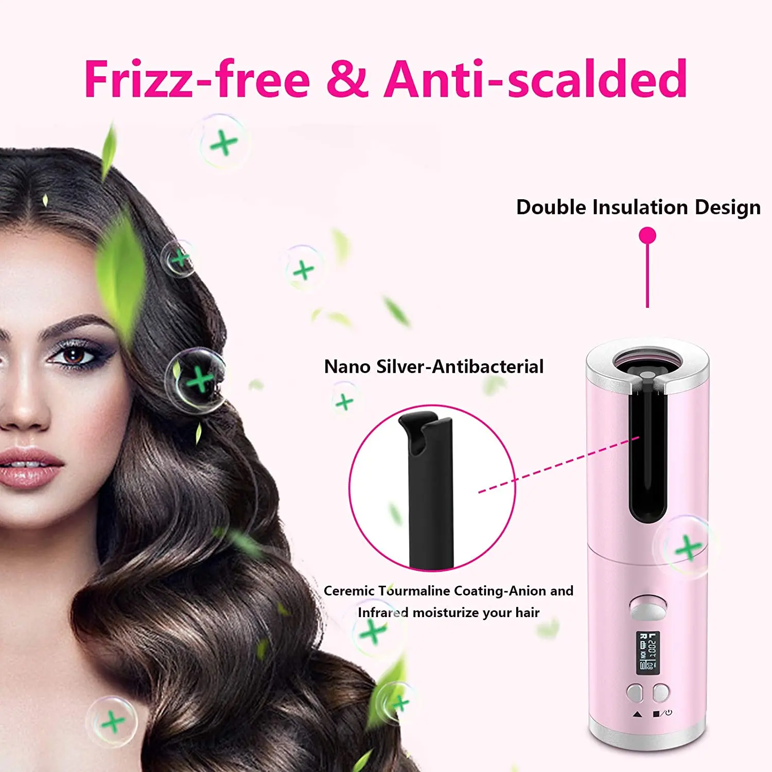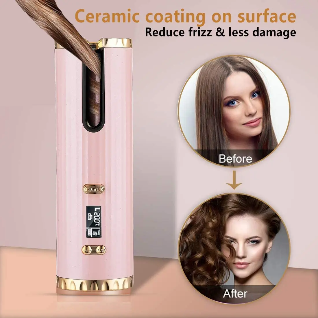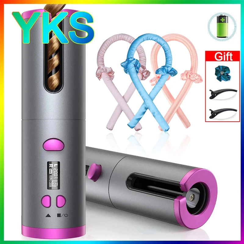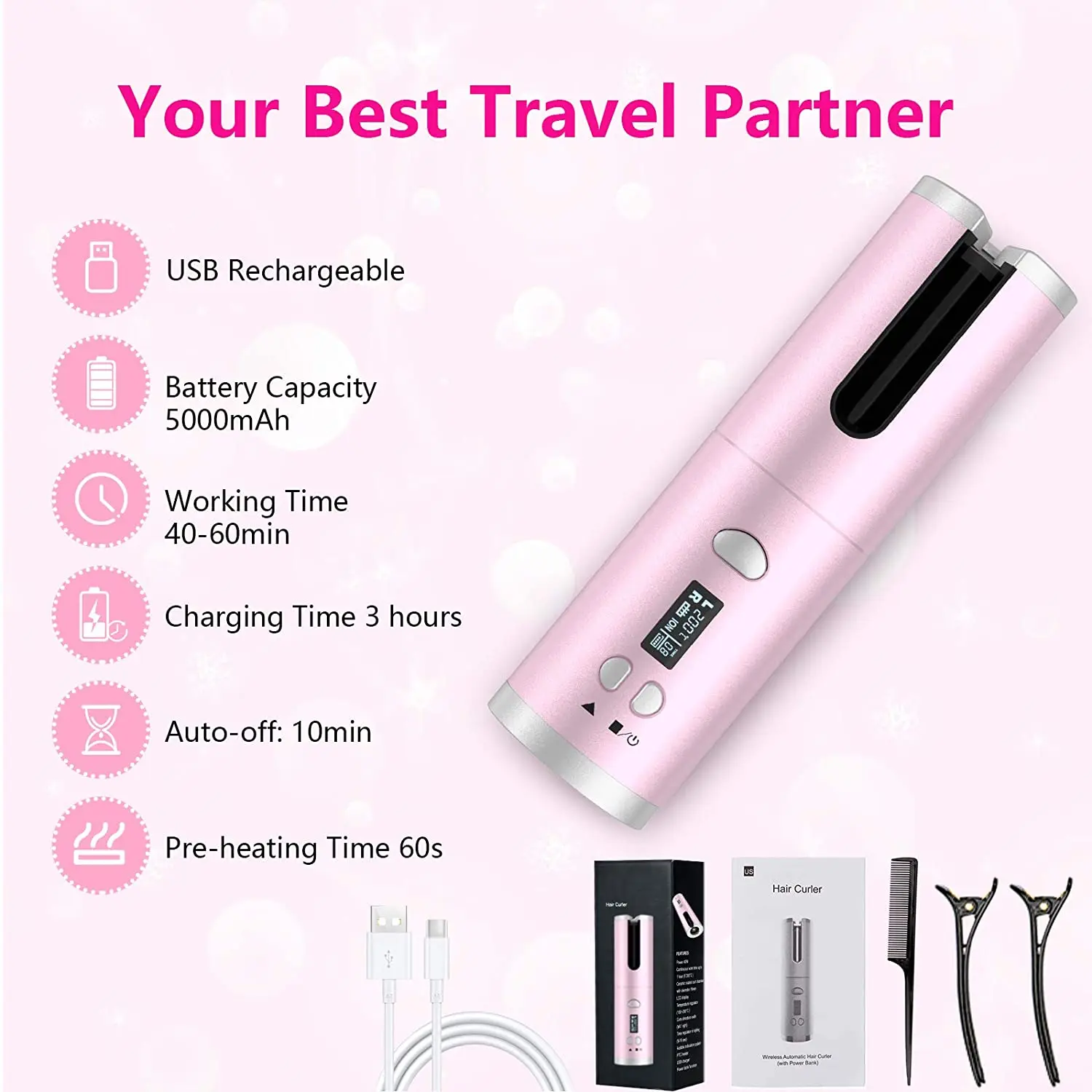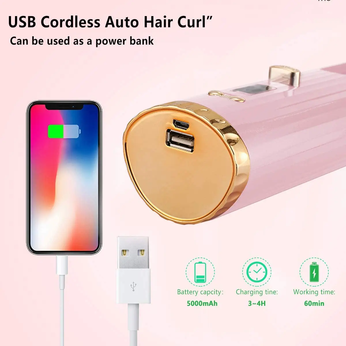 Портативная Автоматическая Плойка для волос, беспроводной утюжок для завивки волос с зарядкой от USB, с ЖК-дисплеем, керамический стайлер с вращающимися волнами