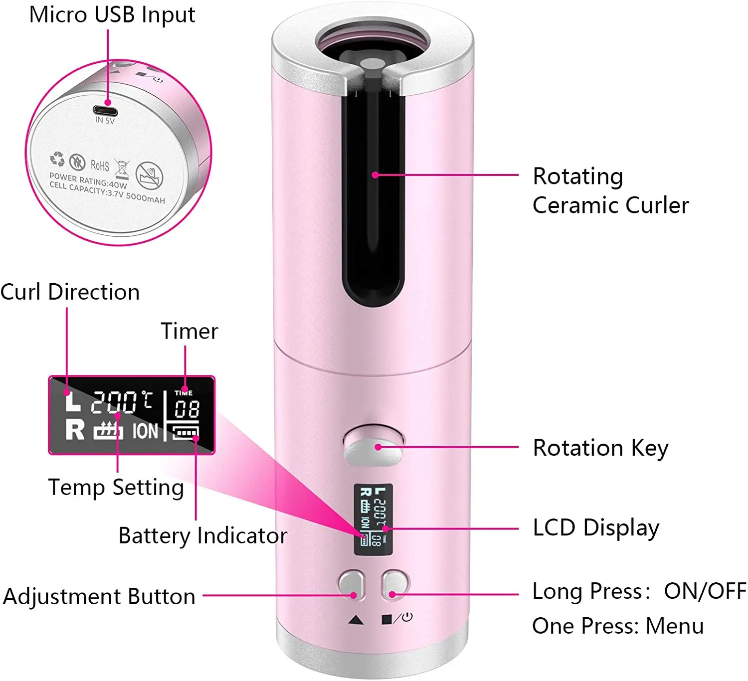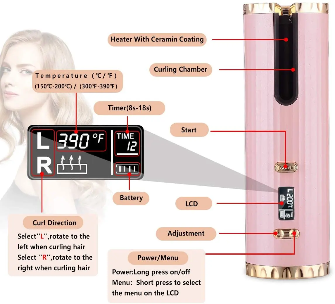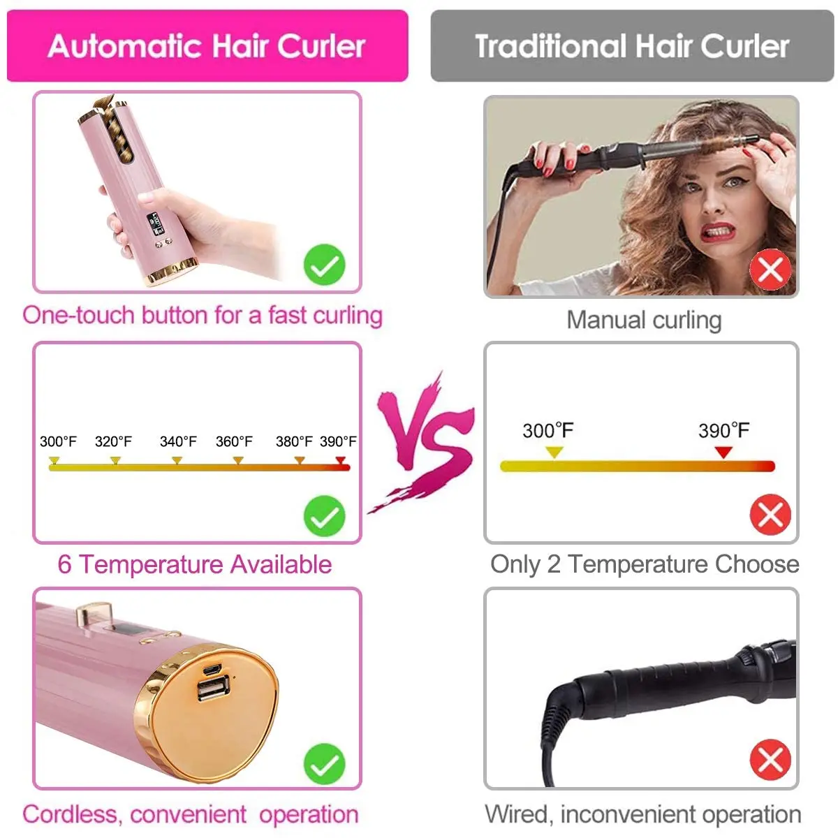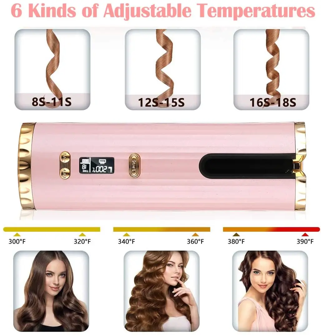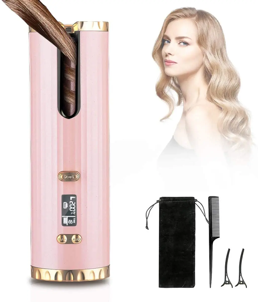 Портативная Автоматическая Плойка для волос, беспроводной утюжок для завивки волос с зарядкой от USB, с ЖК-дисплеем, керамический стайлер с вращающимися волнами