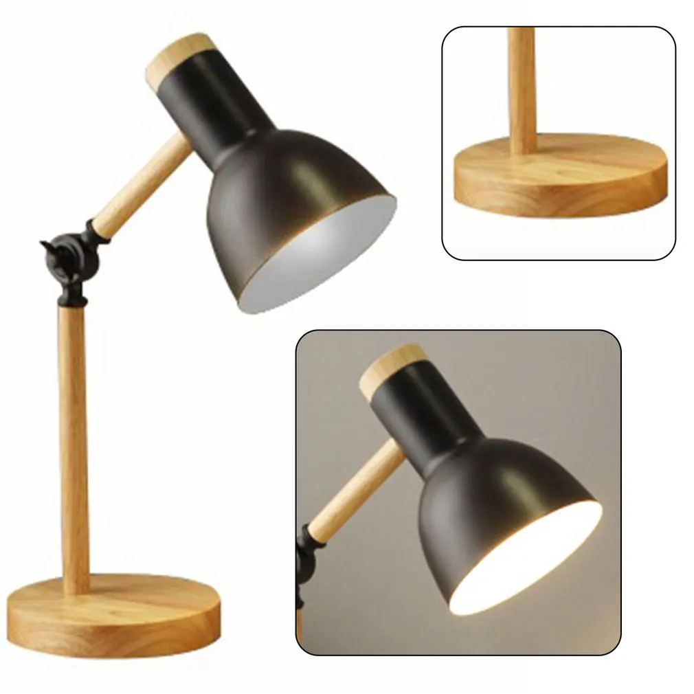 Деревянная настольная лампа E27 с регулируемой яркостью, прикроватный регулируемый светильник для чтения, лампа для дома, спальни, светодиодная Складная простая настольная лампа