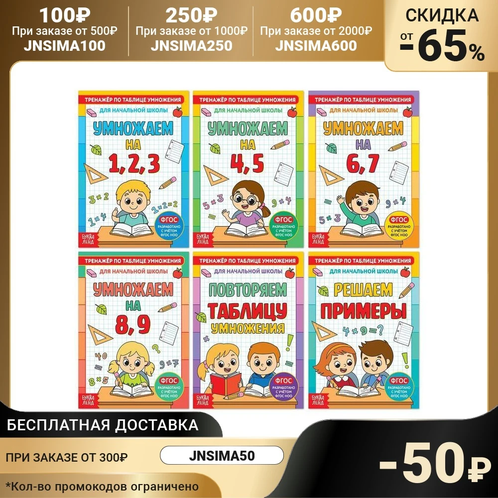 Книги набор Тренажёры по таблице умножения, 6 шт. по 12 стр.