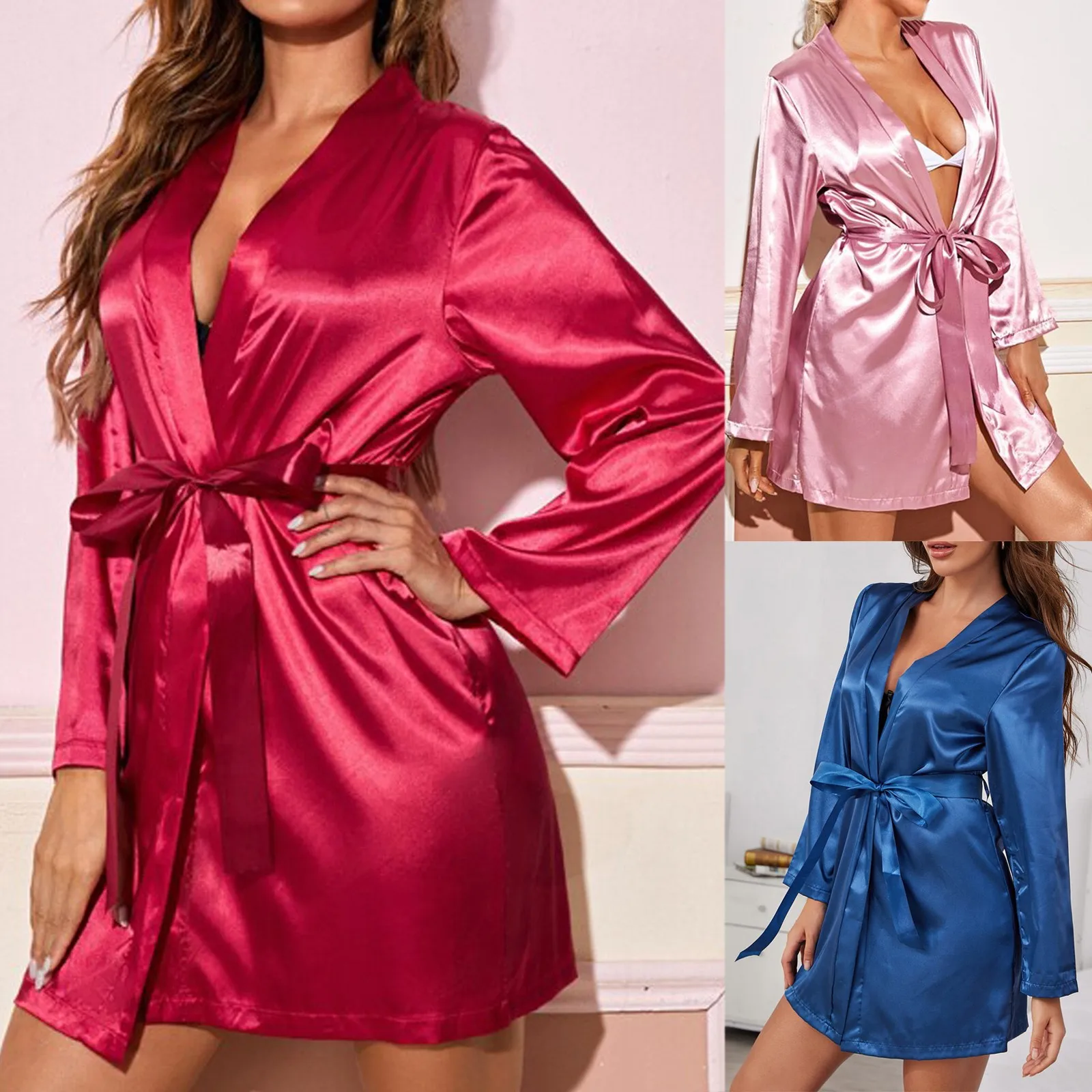 Номер моделиsatijnen pyjama Women Sexy Satin Pajamas Long Sleeve Robe Bathrobe