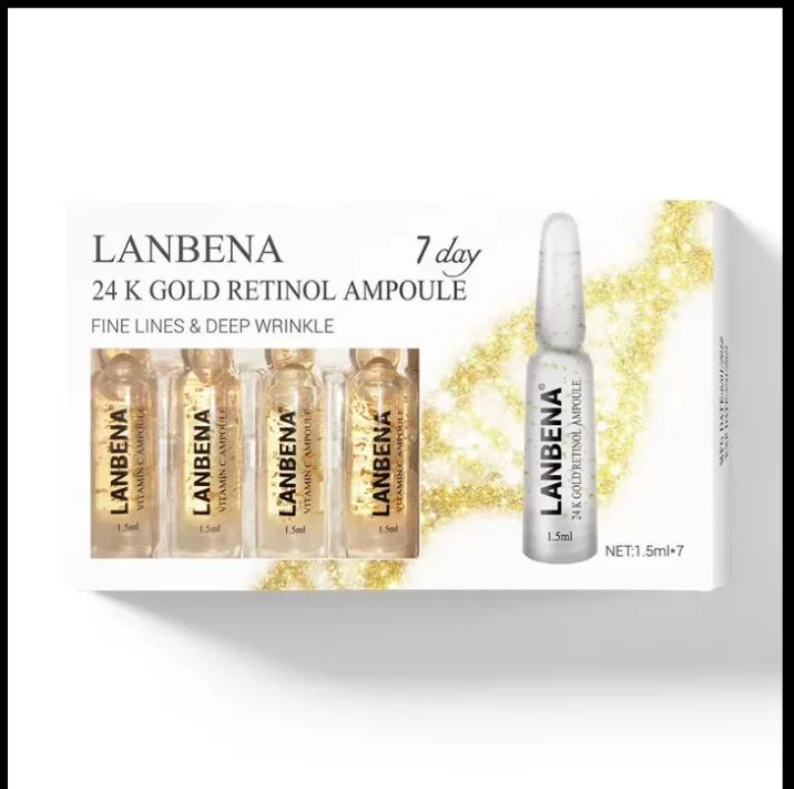 Ампульная сыворотка LANBENA, гиалуроновая кислота + витамин C + 24-каратный Золотой ретинол + Q10 + Церамид, против старения, морщин, увлажняющая красота в течение 7 днейОсобенности