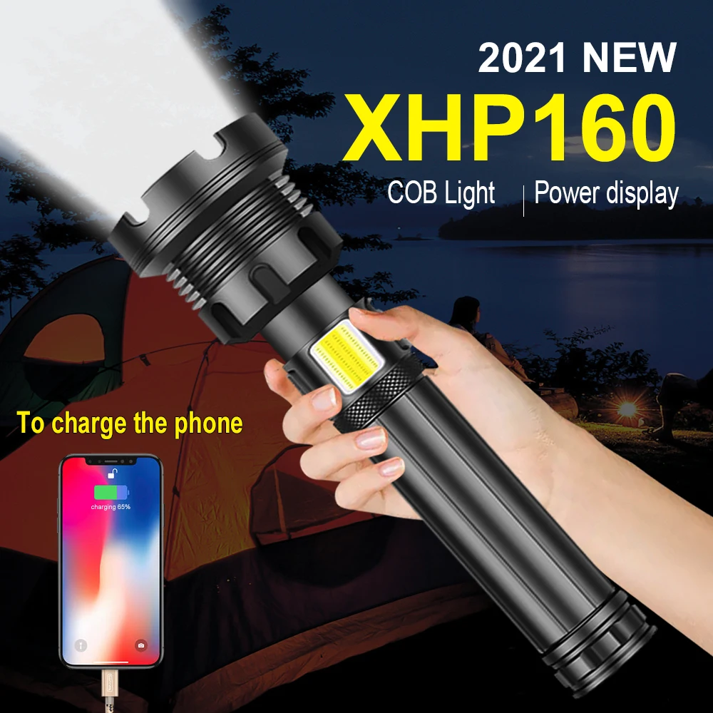 Высокая Мощность XHP160 COB супер Мощность Фул светодиодная вспышка светильник фонарь USB Перезаряжаемые XHP90 светодиодный тактический вспышки светильник зум светодиодный Фонари Рабочая лампа