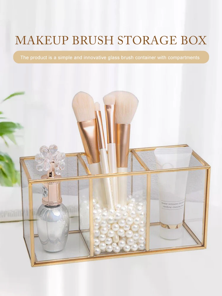 Прозрачный Стекло ящик для хранения кистей для макияжа золотая коробка для хранения косметики контейнер кольцо карандаш Губная Помада держатель на нашем сайте! Кисти для макияжа Организатор