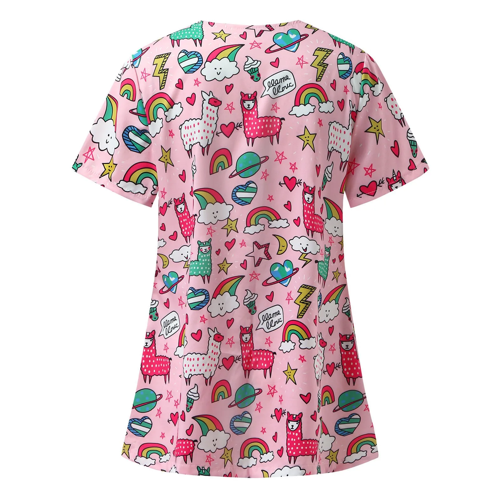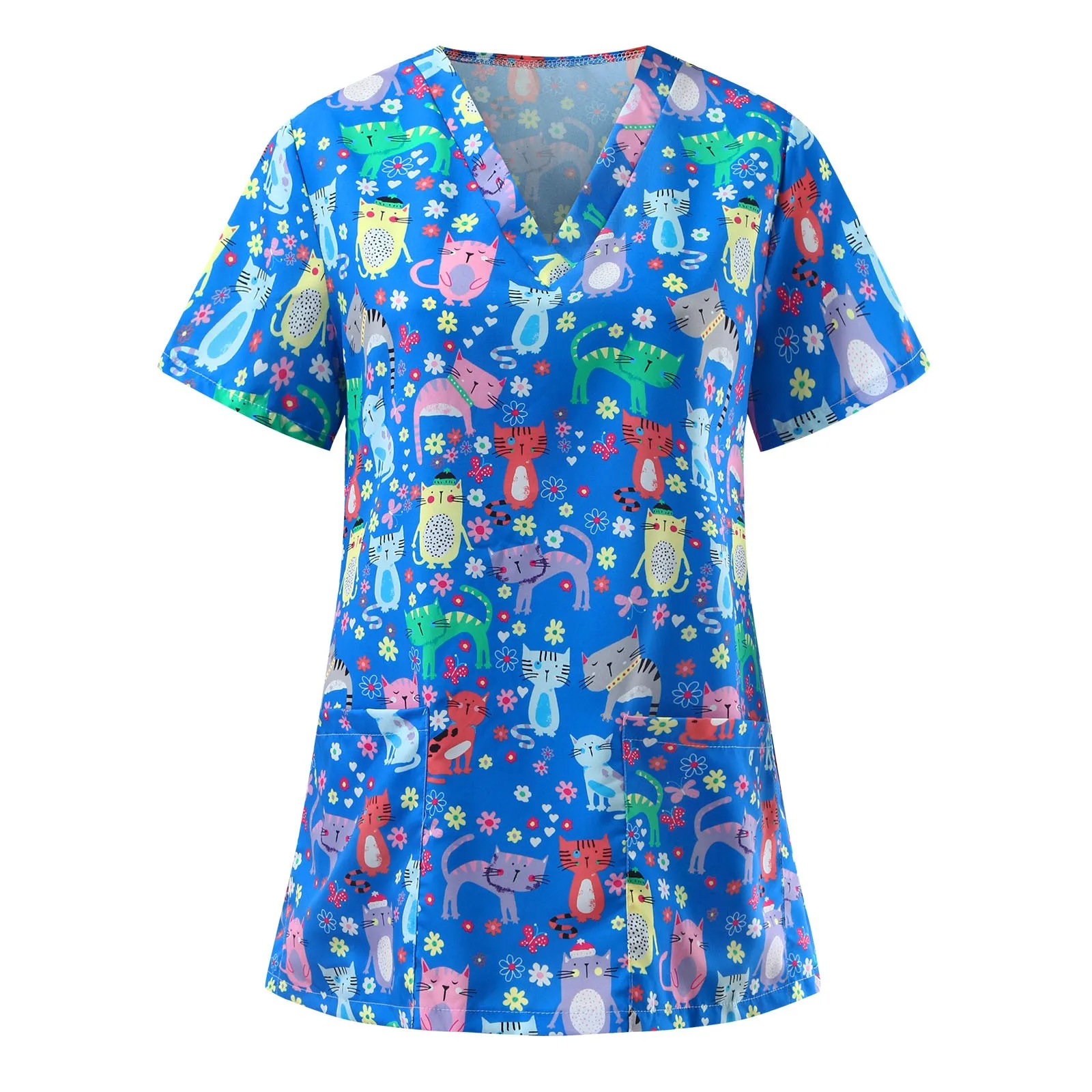 2021 женские футболки с коротким рукавом с V-образным вырезом и мультяшным рисунком топы с принтом в виде животного, рабочая форма для кормящих мам, униформа медсестры, топы для медицинских работников