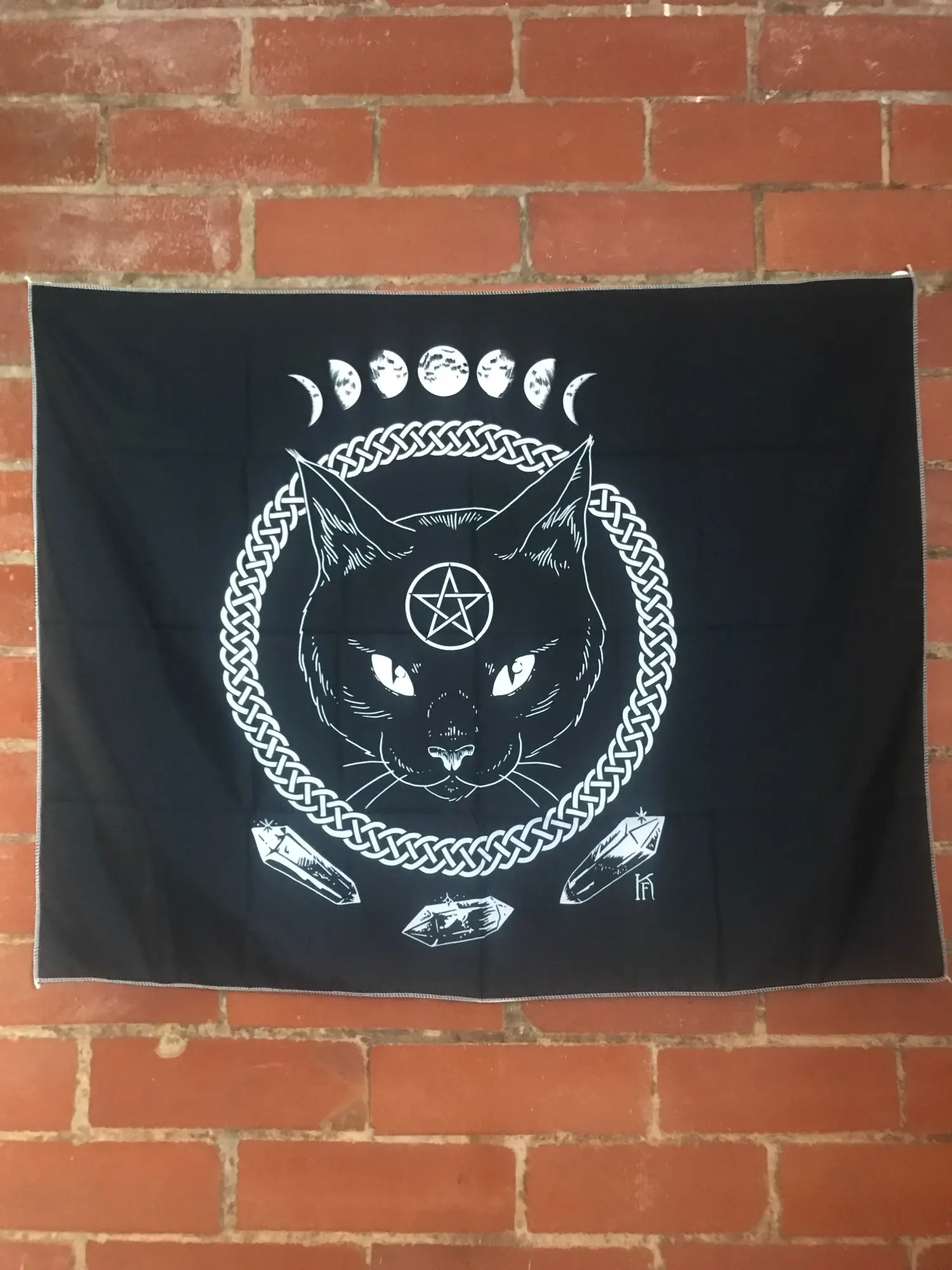 Кошка таинственное гадание колдовские гобелены настенные Висячие гобелены Бафомет оккультная домашняя стена черный крутой декор кошка Кобан