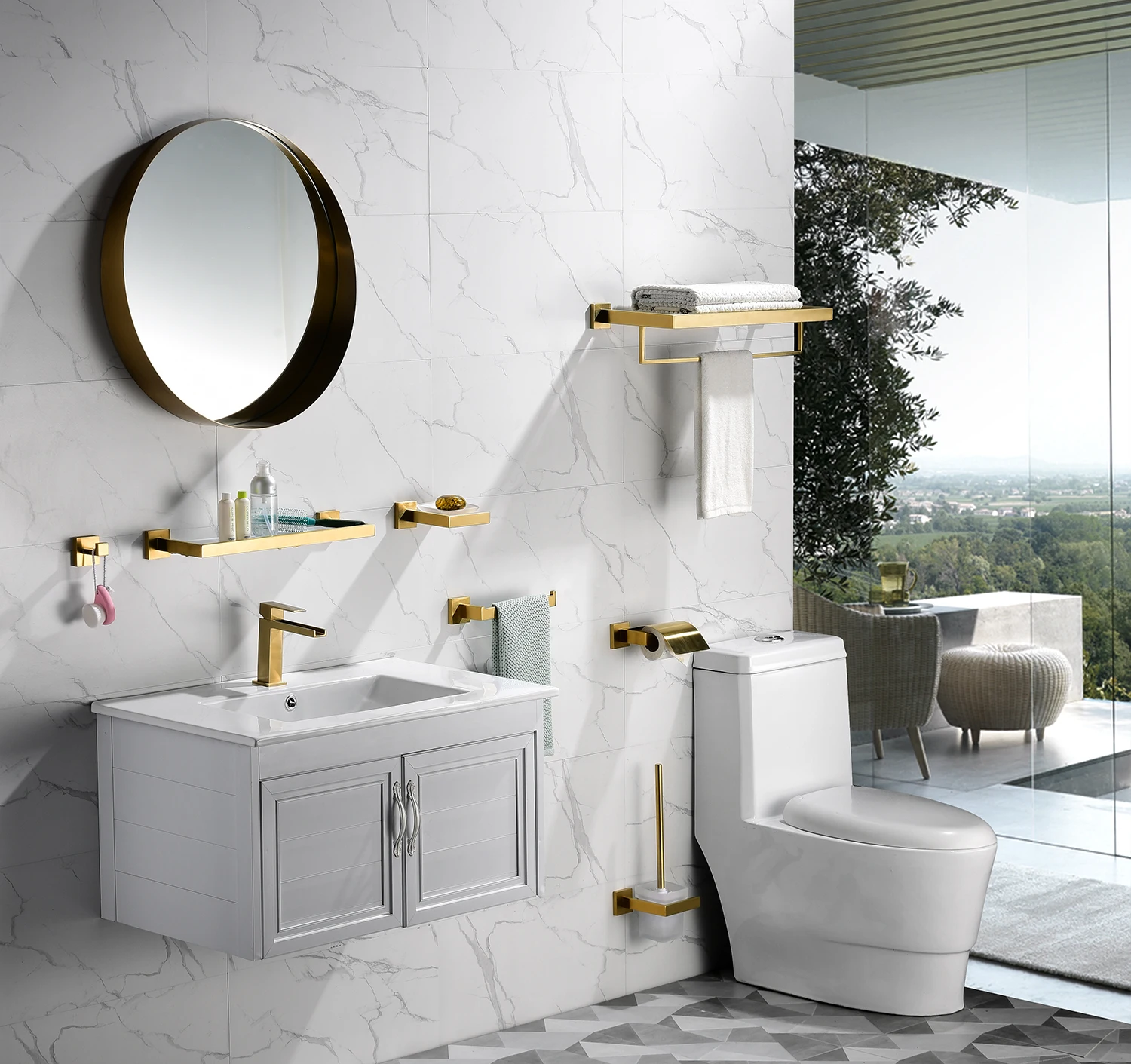 Набор аксессуаров для ванной комнаты, Золотой держатель для полотен...