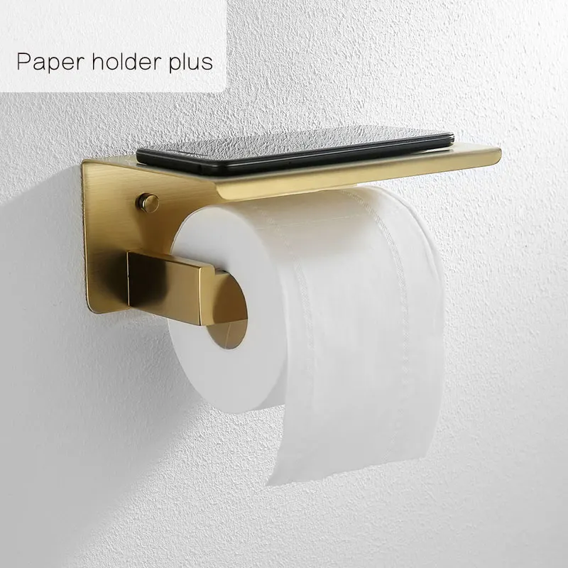 Золотистый набор аксессуаров для ванной комнаты, держатель для бумаги из нержавеющей стали 304, вешалка для банных полотенец, крючки для мыла, посуды, туалетной щетки, зубной щетки 1