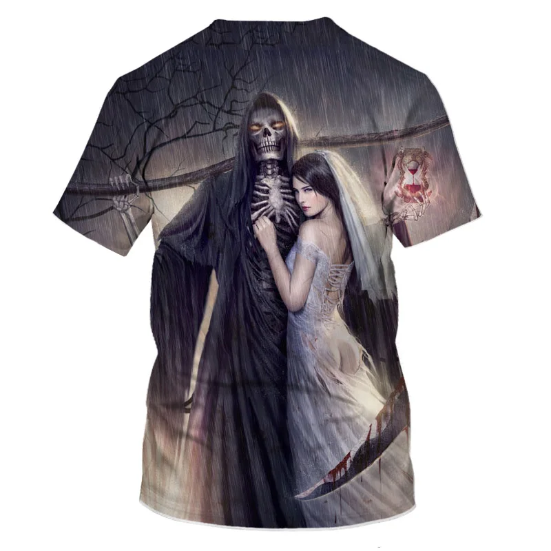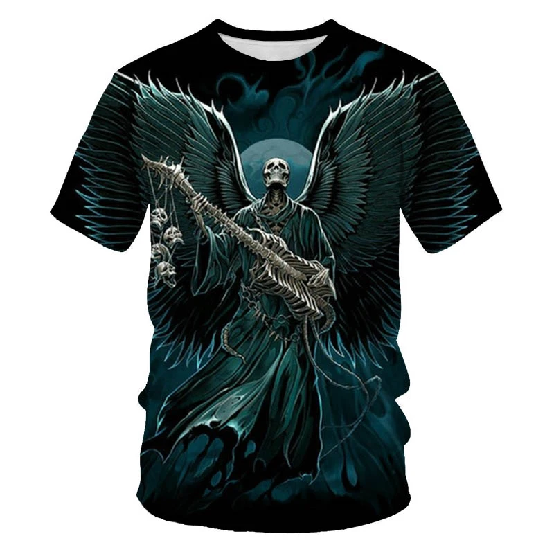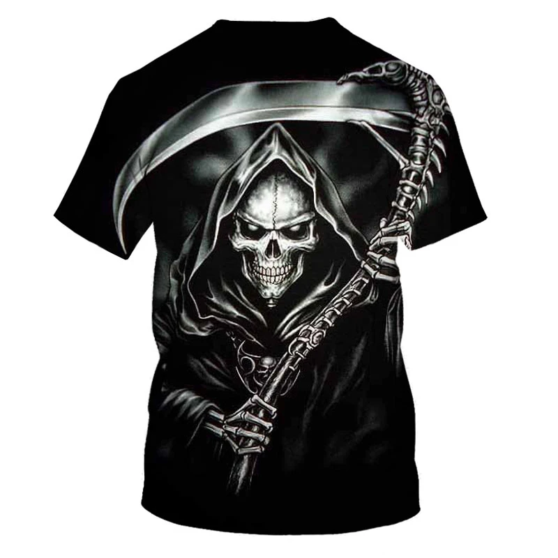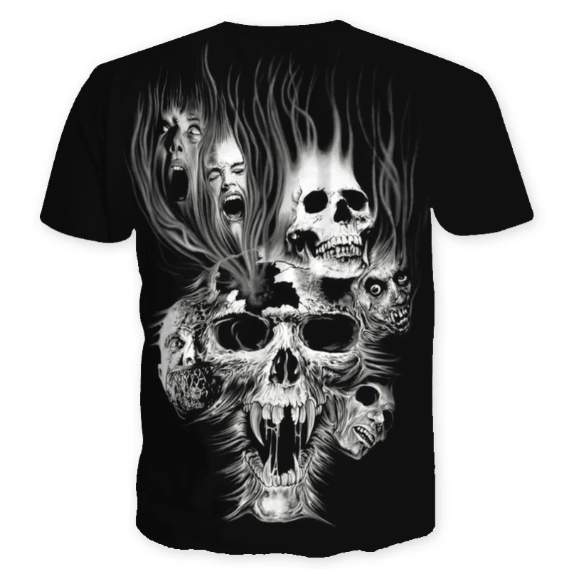 Футболка мужская с 3D-принтом черепа, модный топ в стиле хип-хоп, ужасная рубашка с круглым вырезом, уличная одежда больших размеров, лето