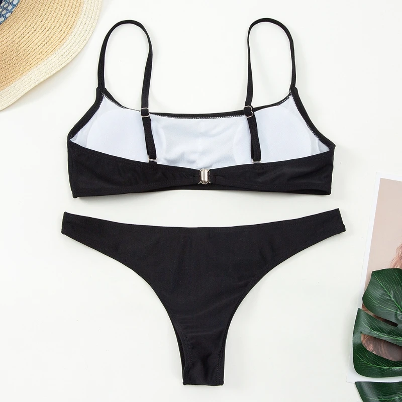 Женский сексуальный бюстгальтер пуш-ап с низкой талией, стринги, однотонный комплект бикини, треугольный купальник