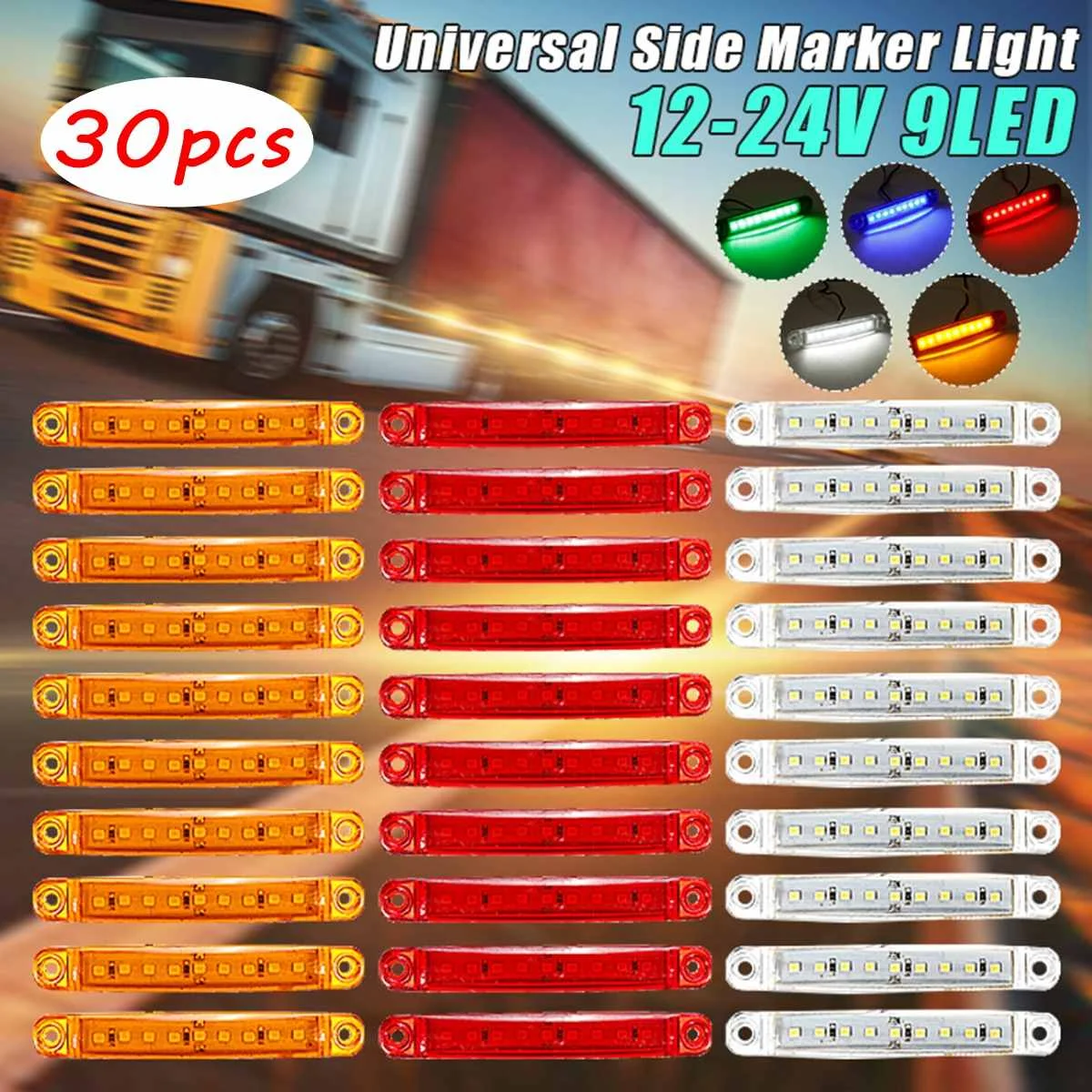 30 шт. + 2 шт. 9 светодиодный DC12-24V Боковой габаритный фонарь светильник лампы для автомобилейгрузовиковприцеповГрузовые автомобили 100*15*10 мм Цвет: белыйкрасныйжелтыйсиний