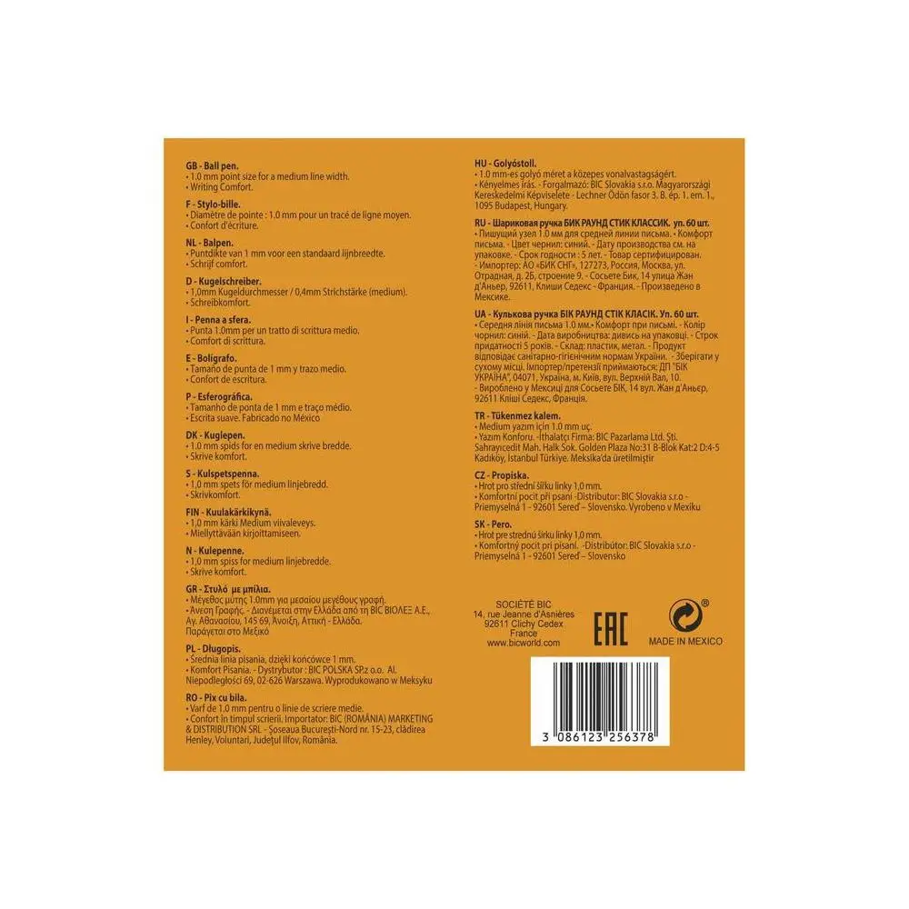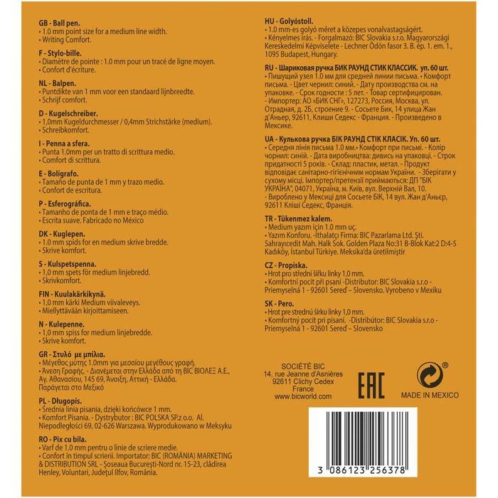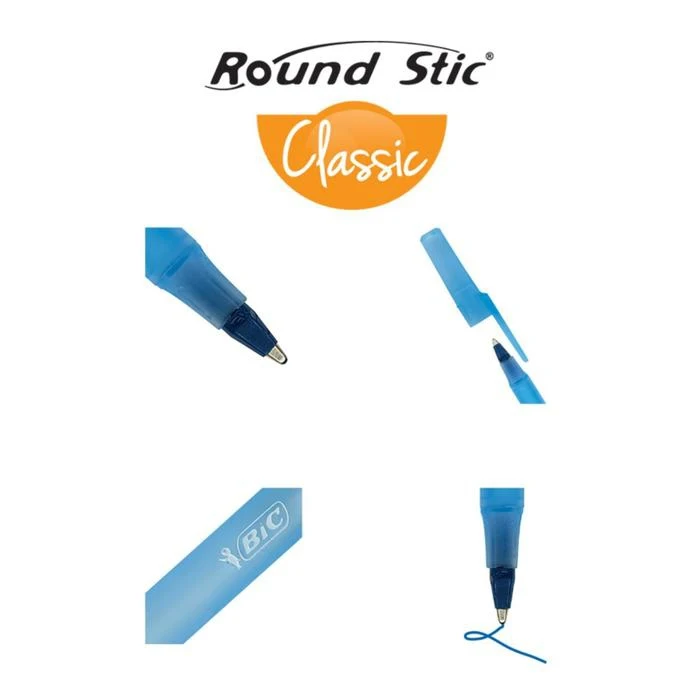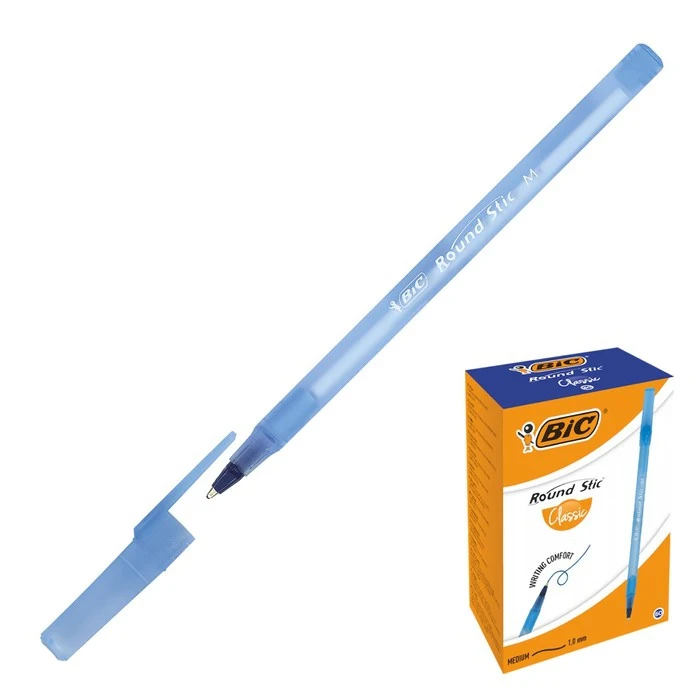Ручка шариковая, синяя, среднее письмо, BIC Round Stic Classic