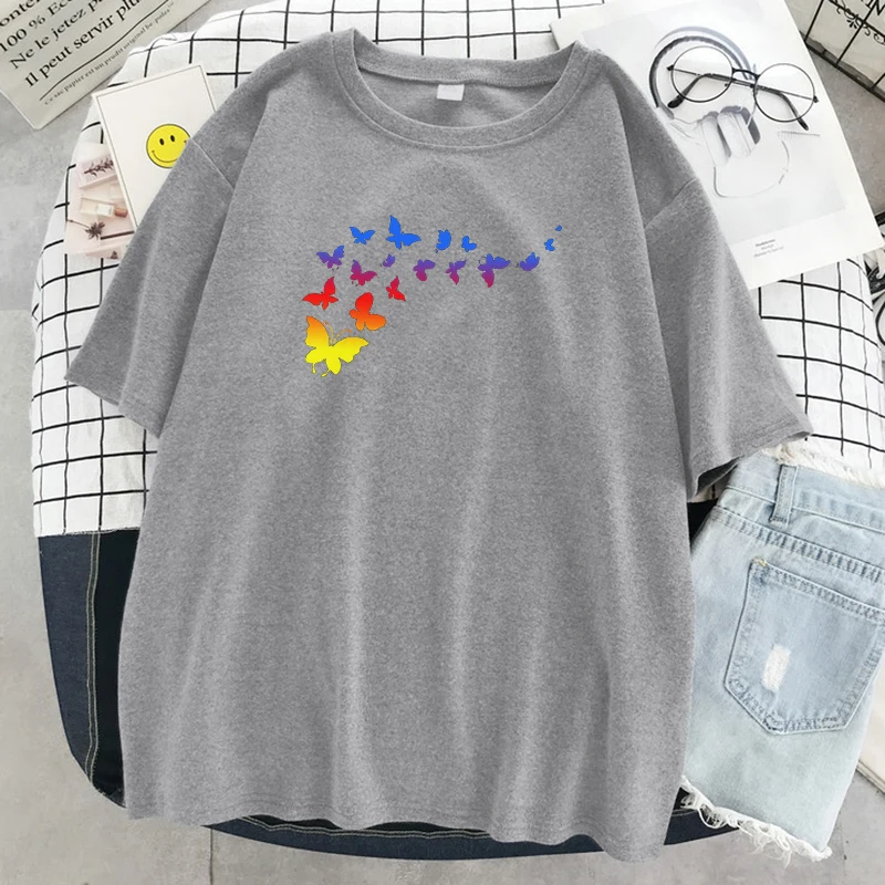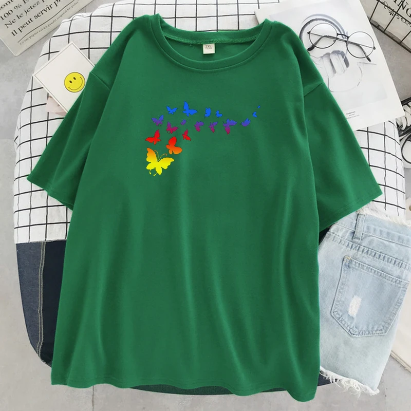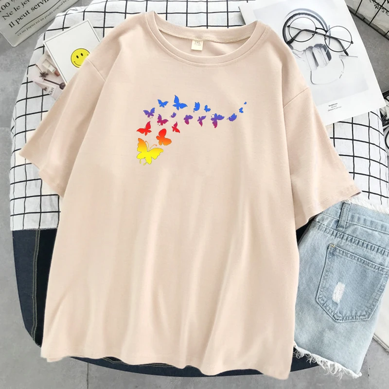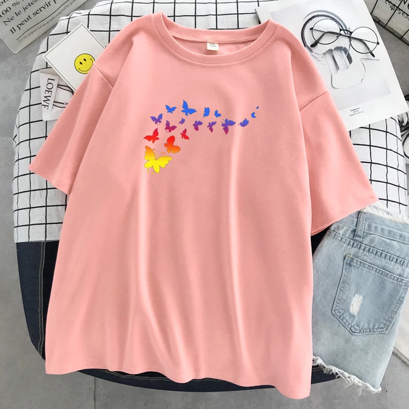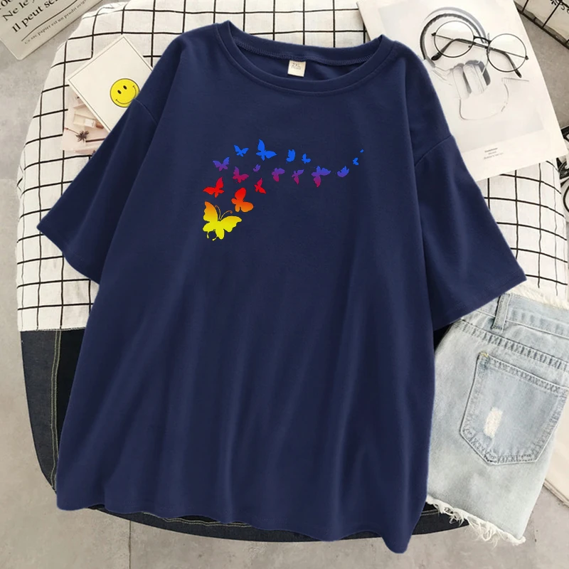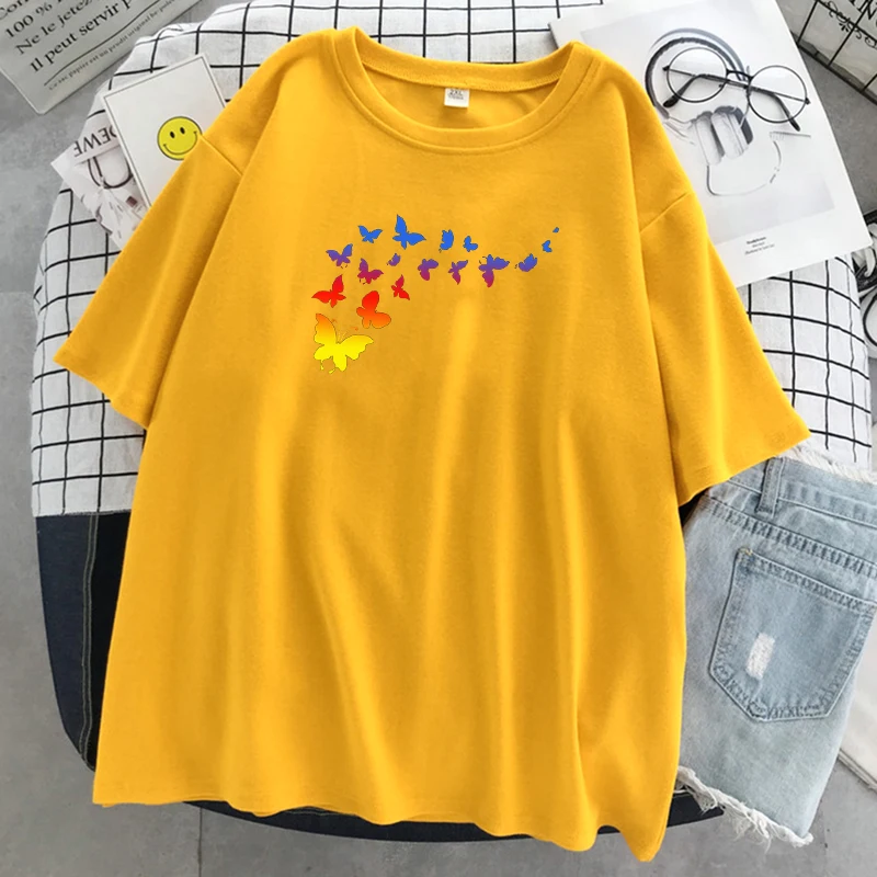 Цвет бабочка личность с принтом женская одежда модные ботфорты; Повседневные футболки; Летняя футболка для мальчиков; Рубашки из дышащего материала с круглым вырезом топы