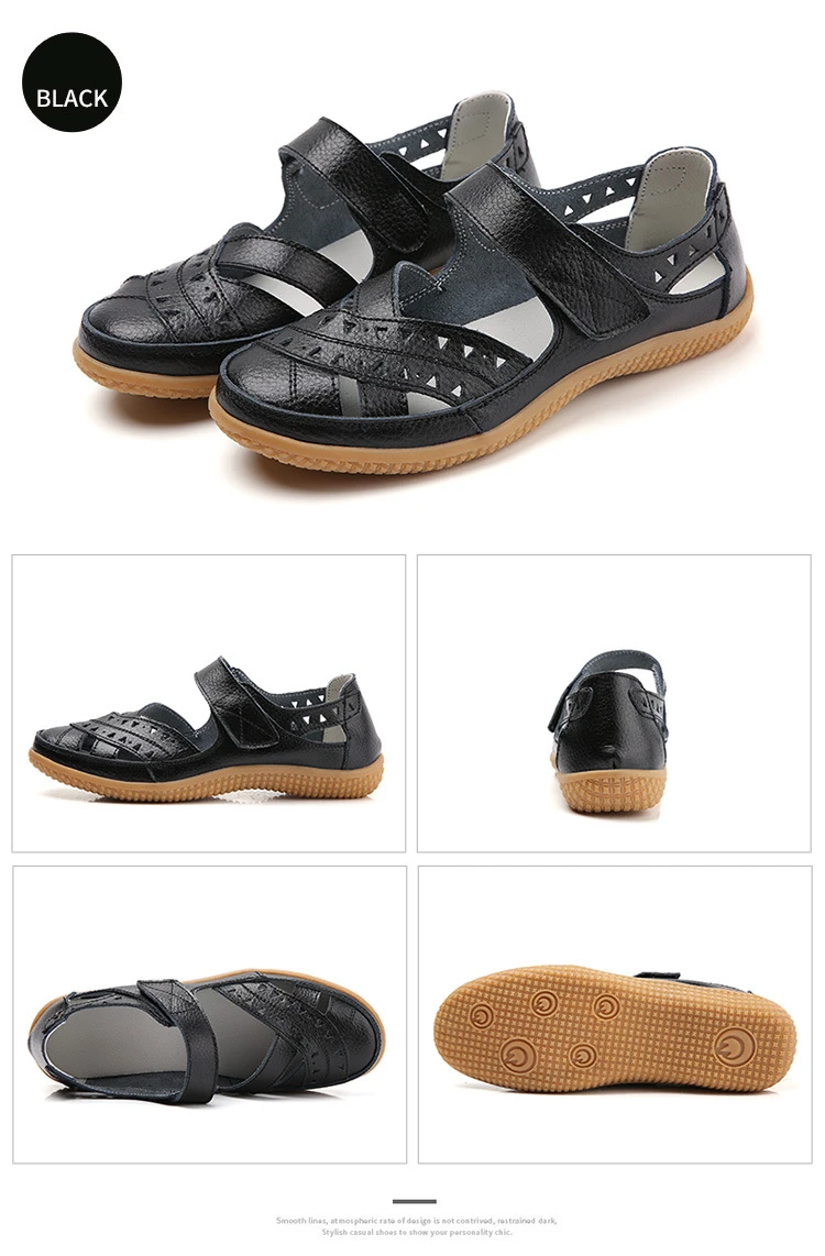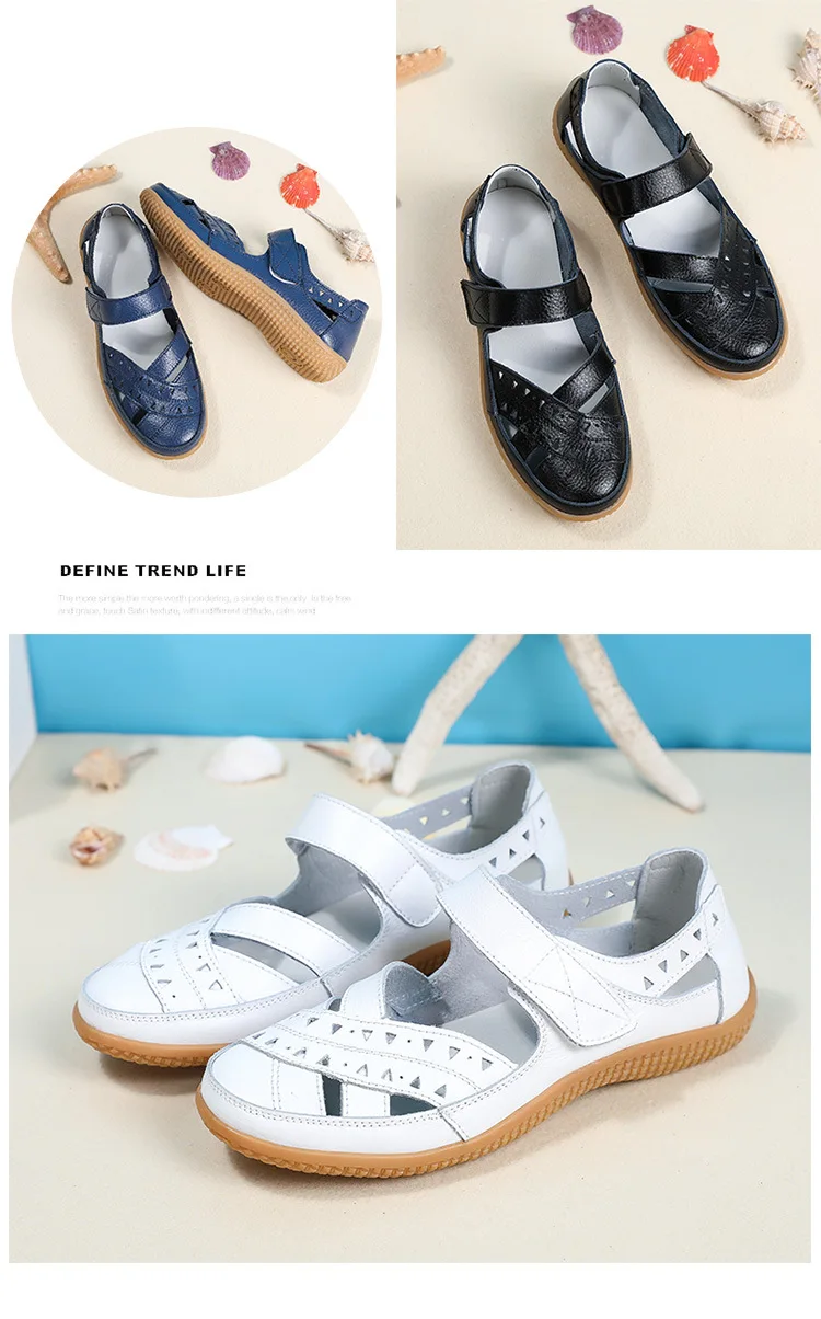 Женские босоножки WOIZGIC из натуральной кожи, ажурные сандалии на плоской подошве, лоферы, крутая пляжная обувь, цвет черный, 42