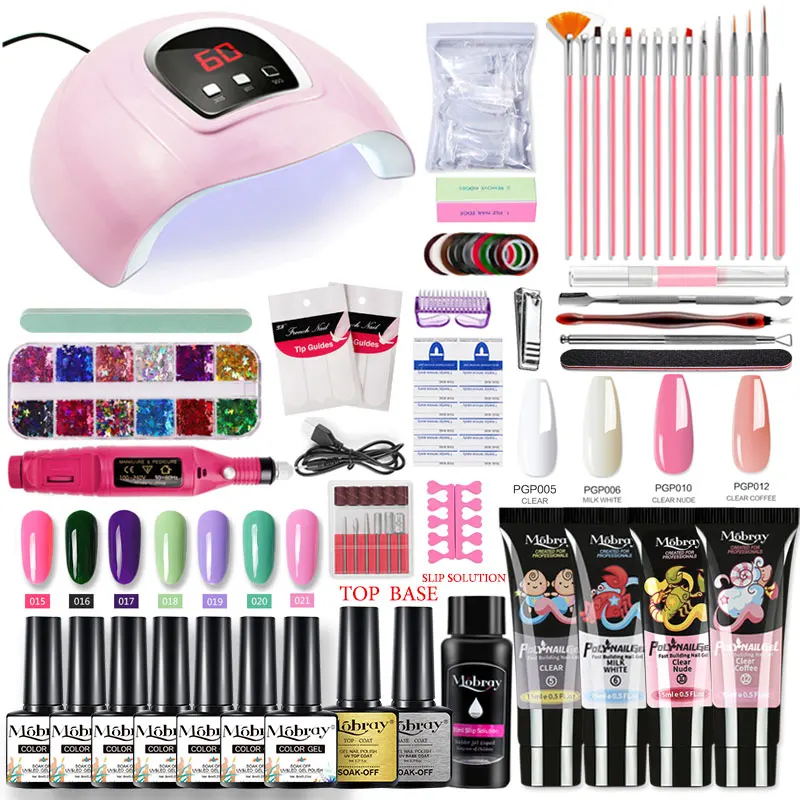 Набор для наращивания ногтей Mobray, профессиональный полигель-лак для ногтей, полный набор для маникюра с лампой, набор для наращивания ногтей