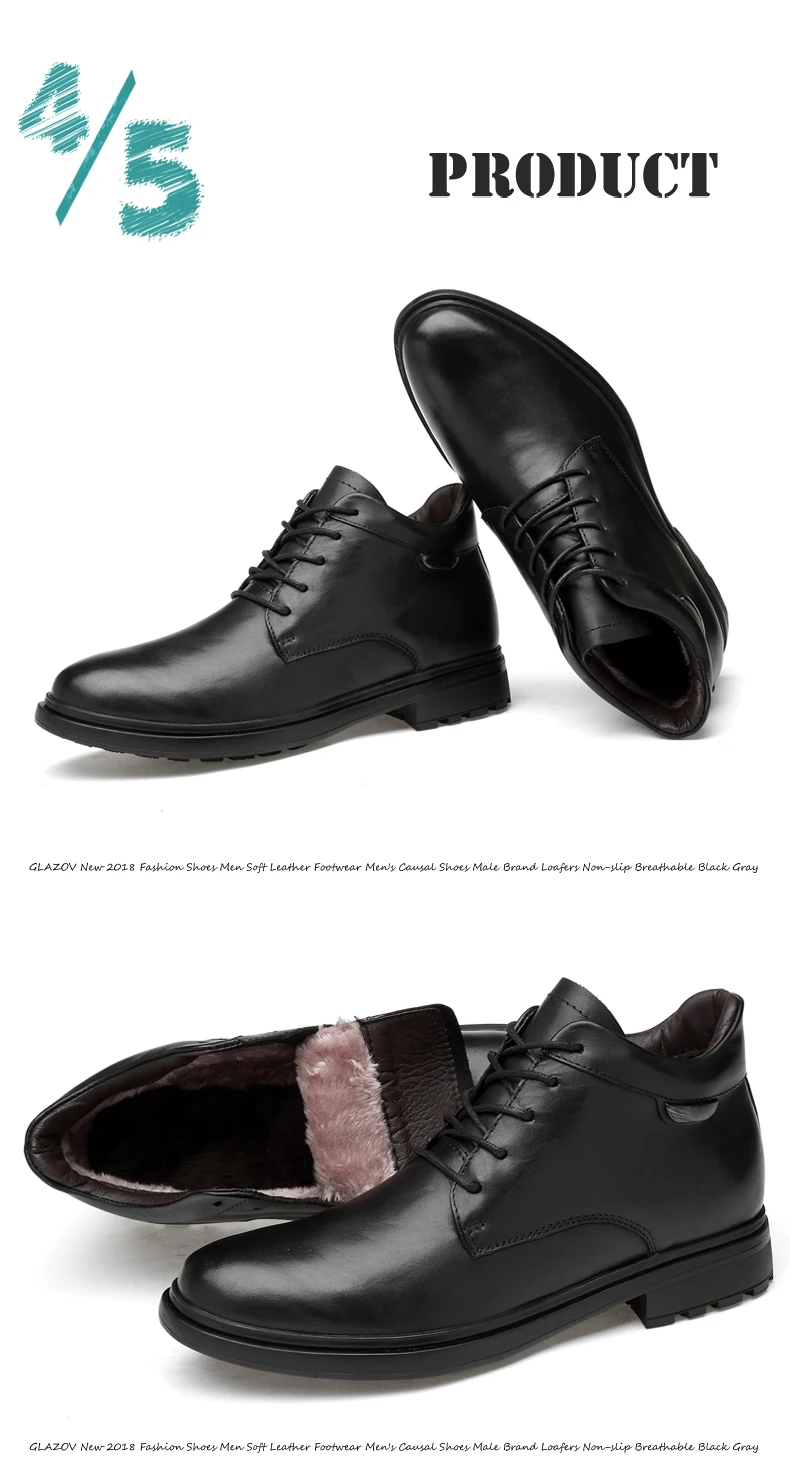 Мужские зимние ботинки из натуральной кожи, с плюшевой подкладкой
