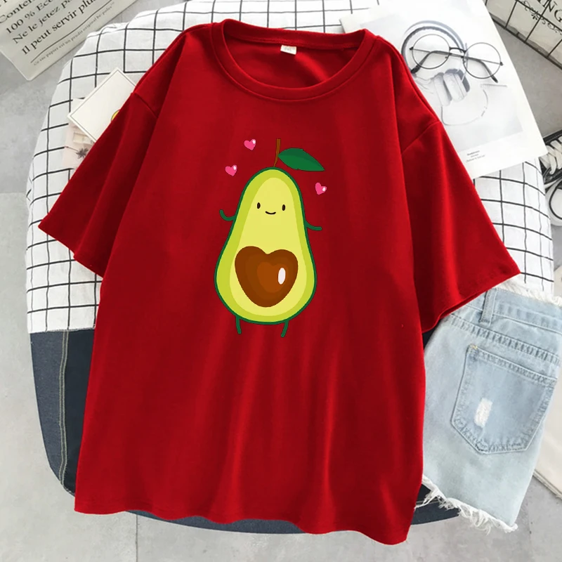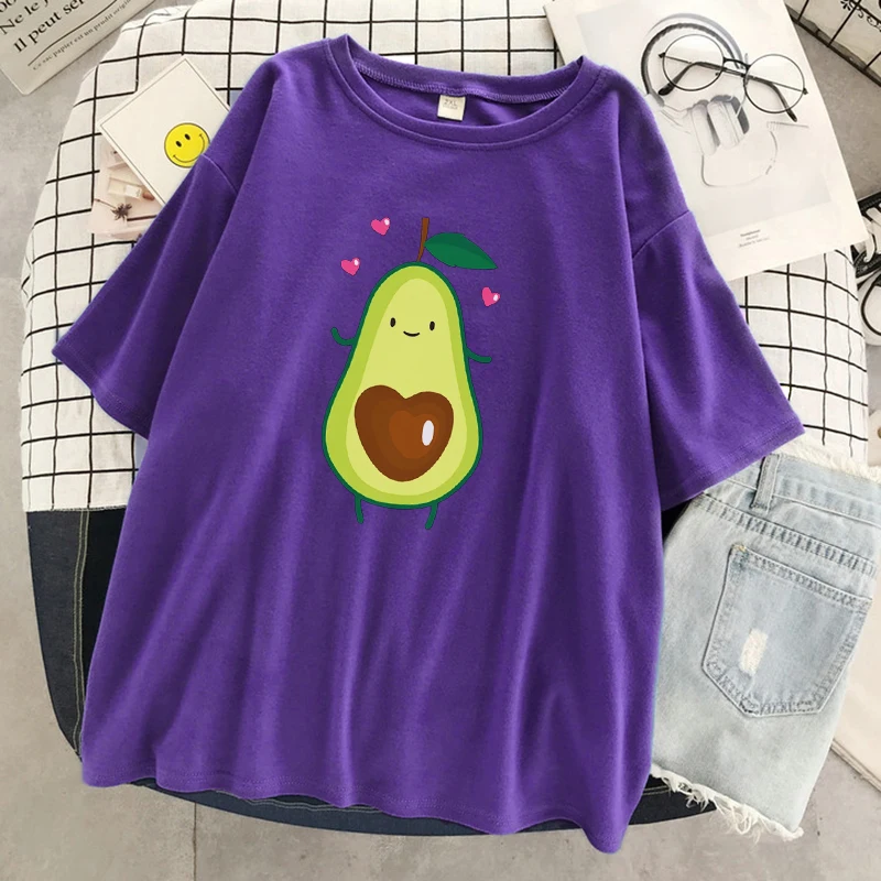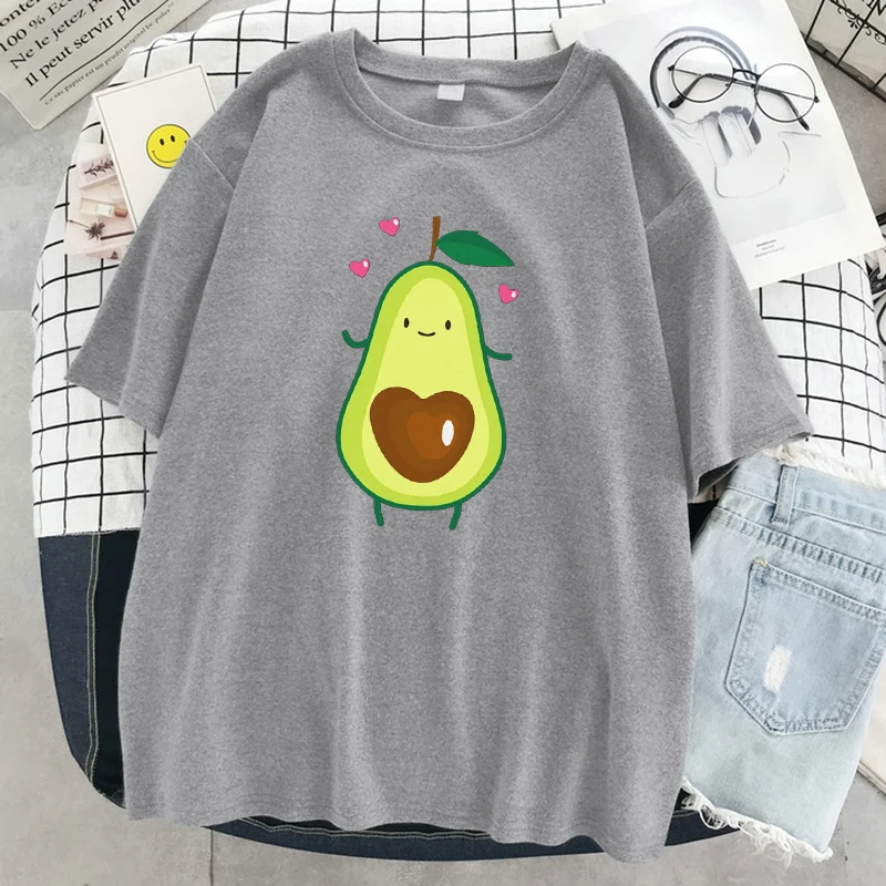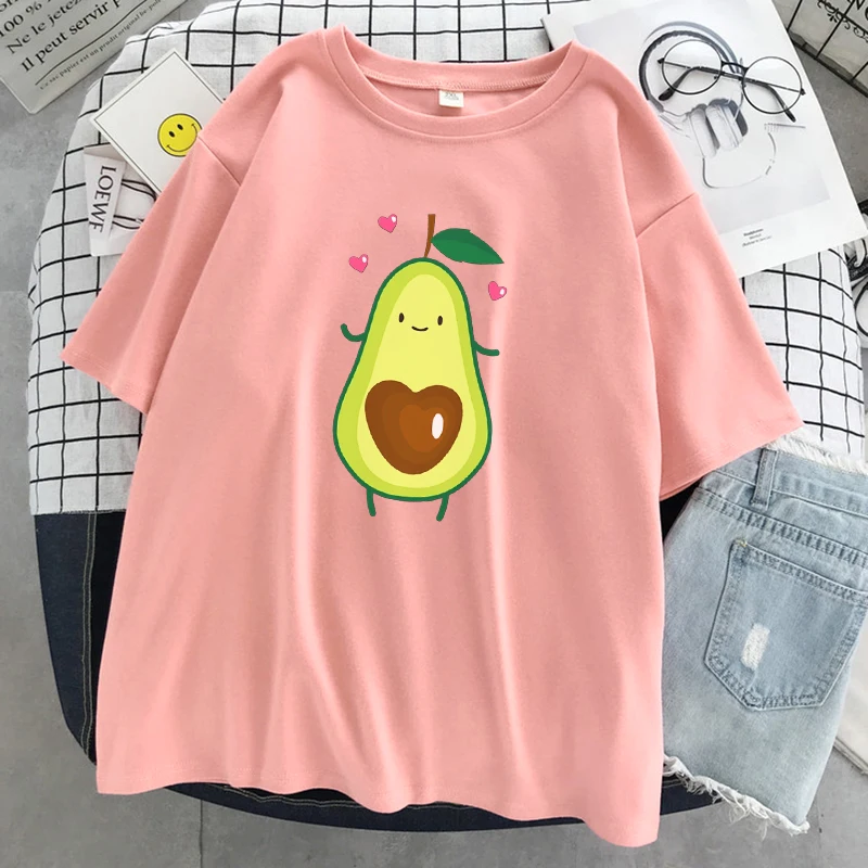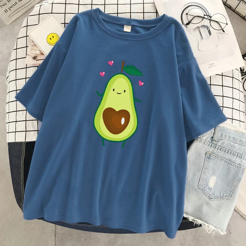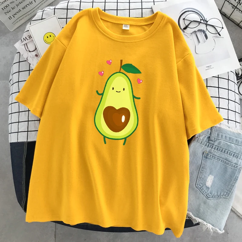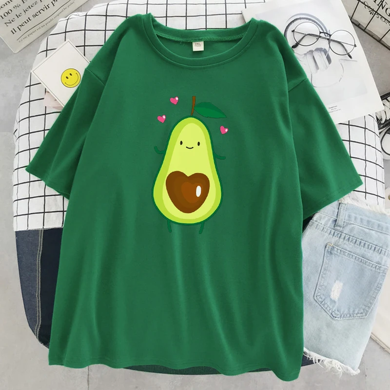 Женская одежда Harajuku с принтом Happy Avocado, мягкая дышащая футболка свободного кроя, модные женские футболки большого размера