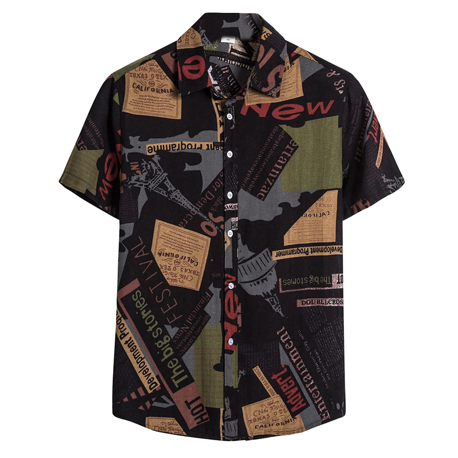 2021 летние Винтаж рубашка для Для мужчин кардиган с коротким рукавом рубашки Гавайский пляжный Свободная блузка с высоким, плотно облегающим шею воротником рубашка camisas hombre