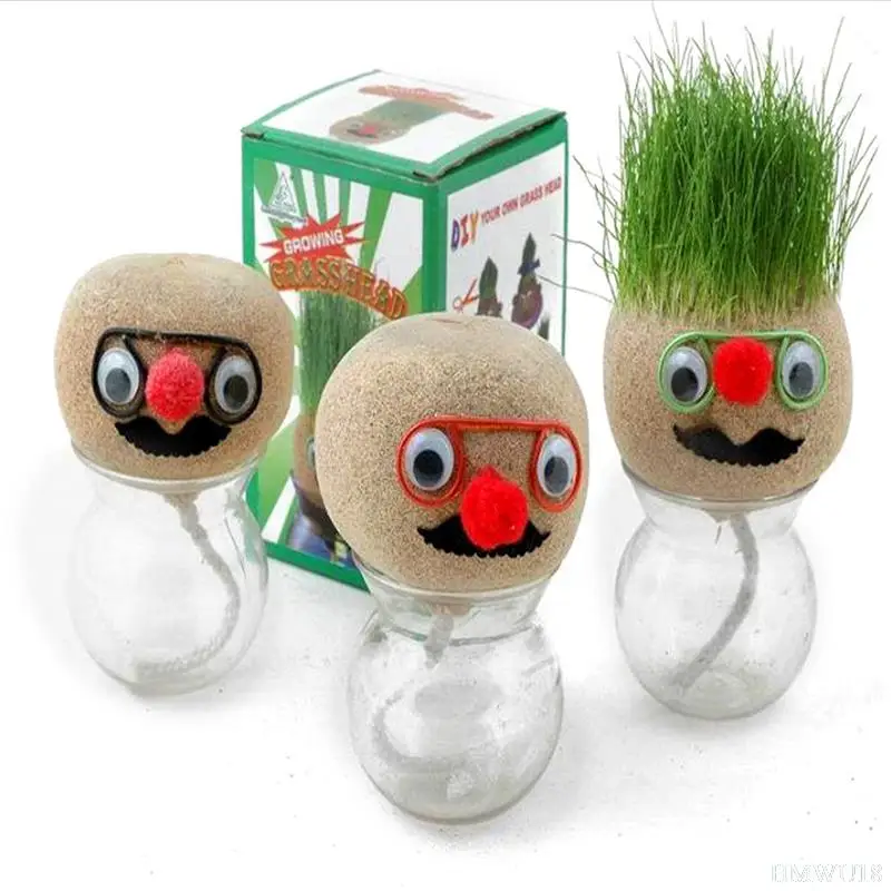 Название продукта: кукла с головой травы Размеры: 8,5*8,5*13 см Вес: 120 г Посылка включает в себя: 1 шт. Метод посадки: Во-первых, Замочите всю траву куклы в воде в течение 3-5 часов. Когда она полностью влажная, выньте ее и положите в небольшое место