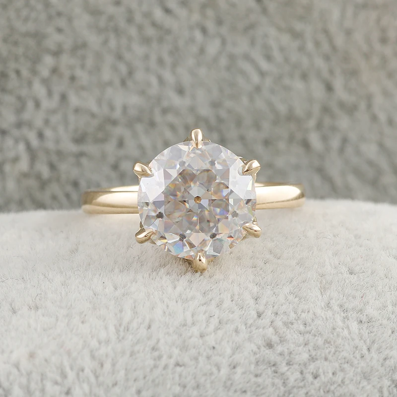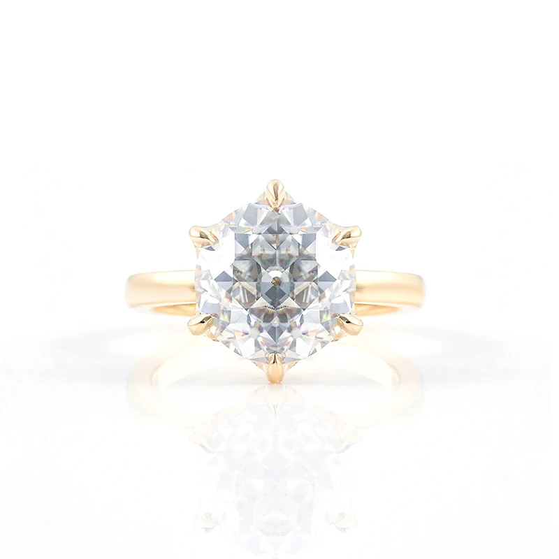 10K желтого золота 10 мм 4ct IJ Цвет бэк Муассанит с маленькими круглыми DEF в лепестки зубцами Fedex доставка