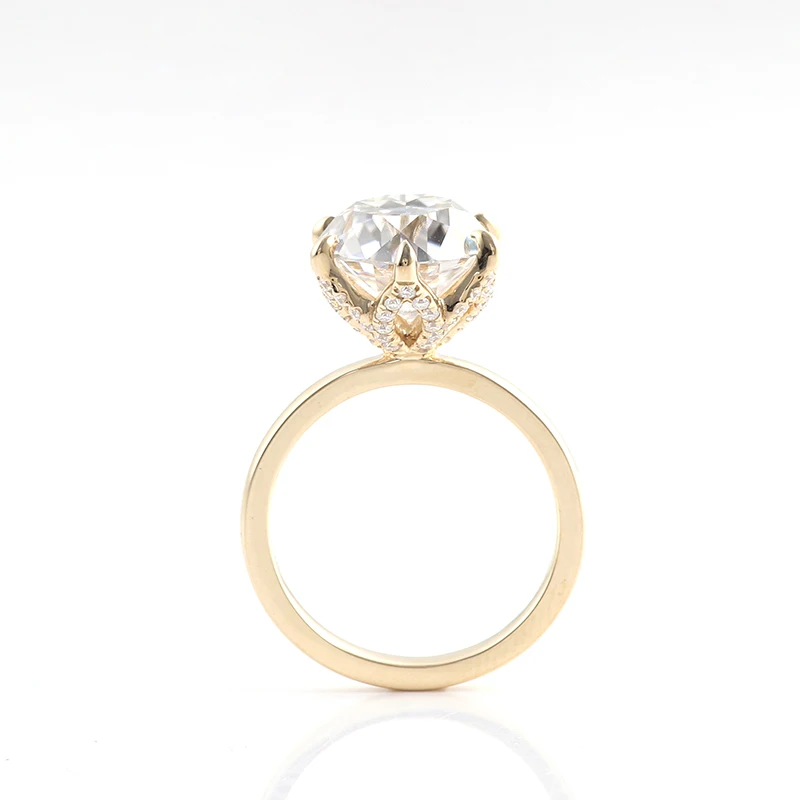 10K желтое золото 10 мм 4ct IJ цвет OEC Moissanite с небольшим круглым DEF в лепестках зубцы Fedex доставка