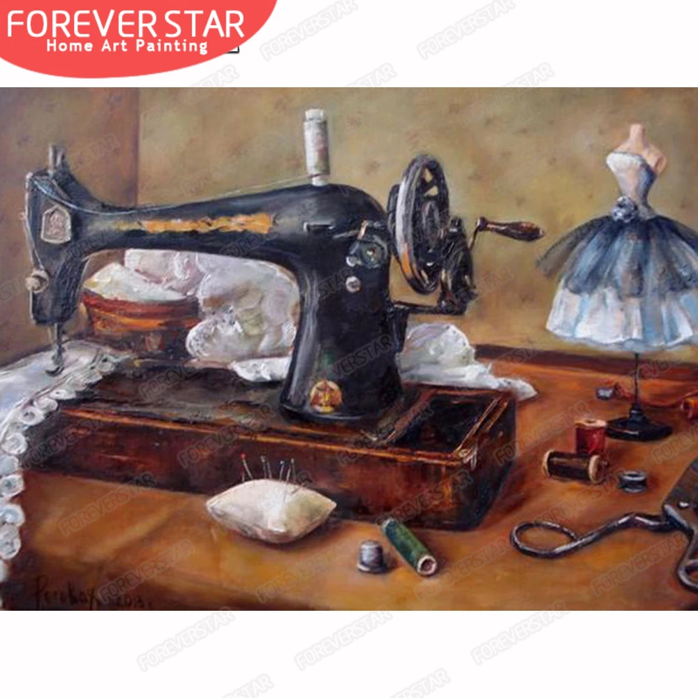 Полностью квадратная/круглая Алмазная картина, швейная машина, набор для алмазной вышивки, декорации, Алмазная мозаика, стразы, домашний декор, подарок
