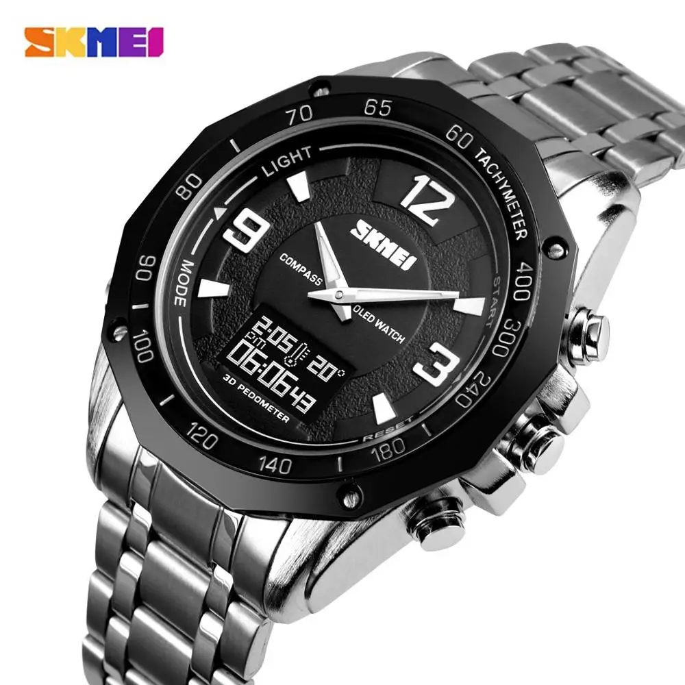 Мужские умные часы SKMEI, двойной дисплей, компас, будильник, подсч...