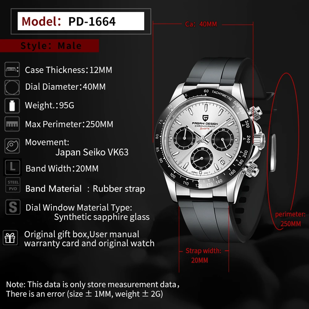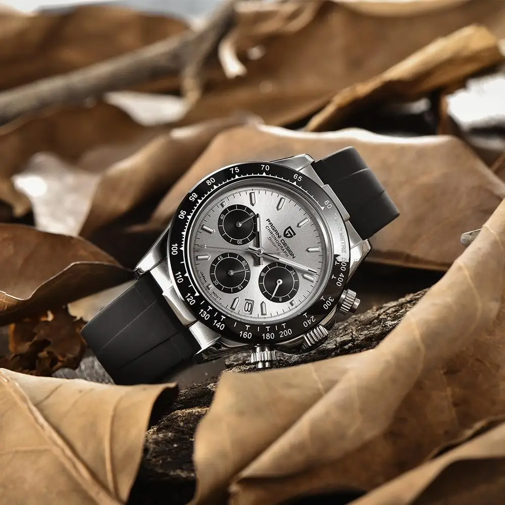 Часы-хронограф PAGANI Мужские кварцевые, спортивные водонепроницаемые светящиеся с резиновым сапфировым стеклом, из нержавеющей стали