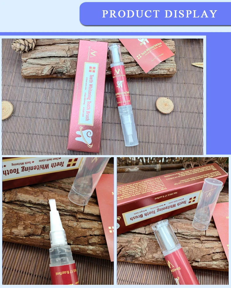 Зубная щетка для отбеливания зубов, эссенция, гигиена полости рта, сыворотка для удаления зубных пятен, отбеливание зубов, зубная паста Вес нетто: 0,17 фл. Унций/5 мл Особенности продукта: Удаляет пятна, вызванные курением и питьем чая или кофе, более эффективным способом, полностью отбеливает желтые зубы и удаляет зубной налет. Дизайн ленивой зубной щетки, легко носить с собой. Аккуратно протрите, чтобы ваши зубы блестели, отбеливая. Метод использования: 1. После чистки зубов протрите поверхность зубов и удалите крышку. Поверните конец карандаша по часовой стрелке. 2. Поверните до тех пор, пока гель не достигнет кончика кисти; 3. Используйте кисть для равномерного нанесения зубной кости на поверхности верхней и нижней челюсти. Нанесите толщину приблизительно 1 мм. 4. Оставайтесь на 10-20 минут и поставьте краску чистой водой. Рекомендуется продолжать использовать его более 1 недели для получения лучших результатов.