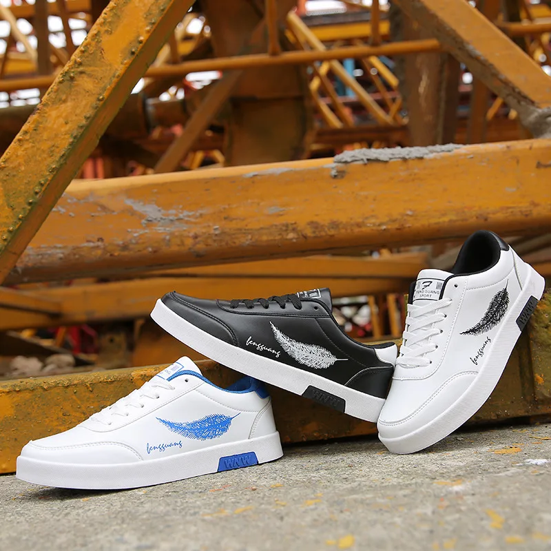 Белые кожаные кроссовки с принтом перьев, мужская повседневная весенняя обувь, уличные кроссовки, мужская спортивная обувь, летние кроссовки для мальчиков и колледжей