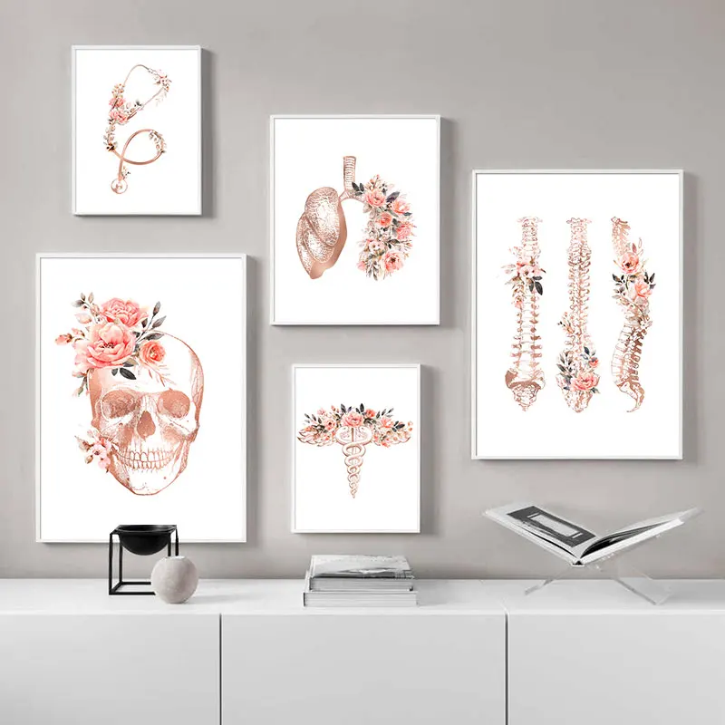 SubjectsFlower Human Anatomy Poster Print Skull Heart