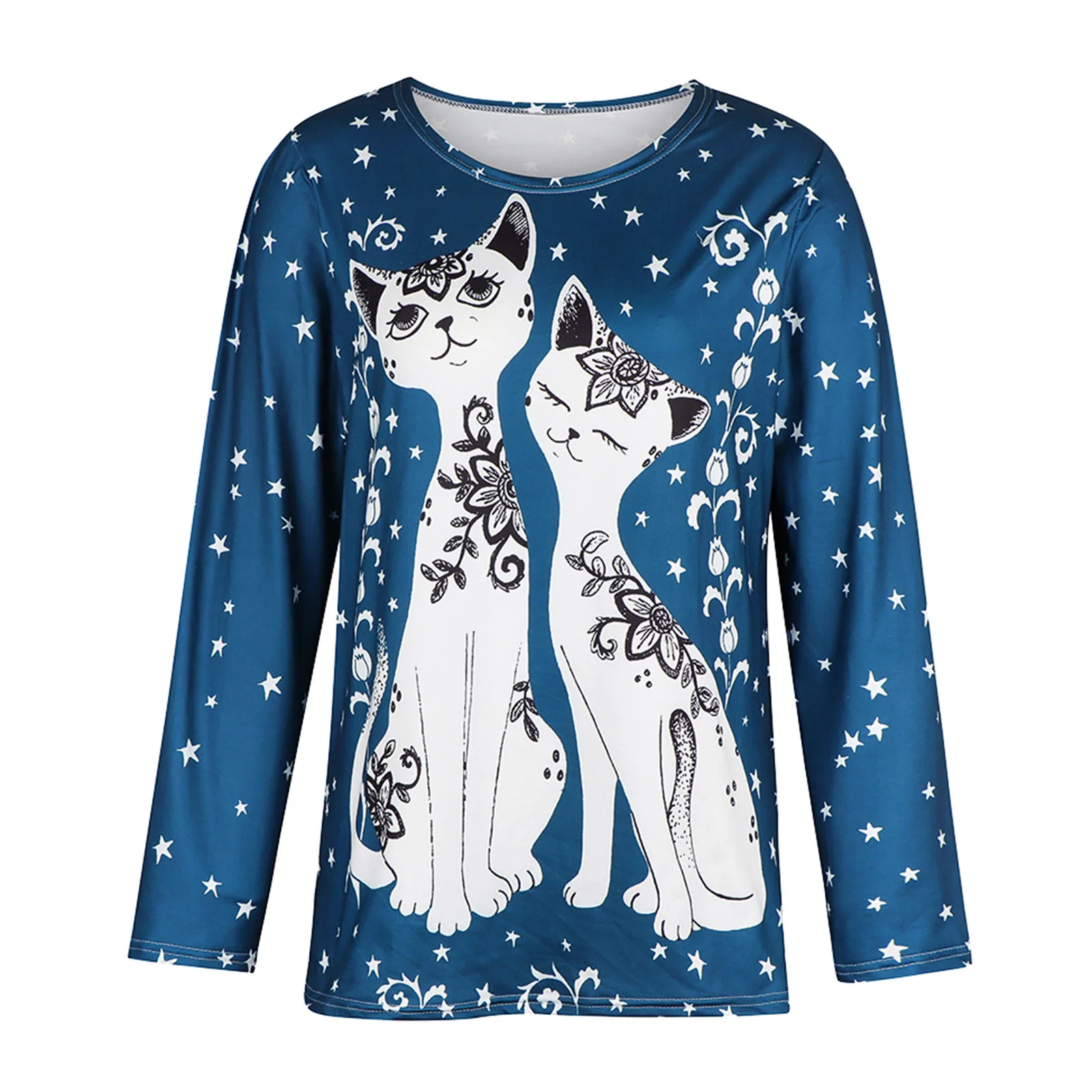 Размера плюс футболки для женщин с длинным рукавом 3D животного с п...
