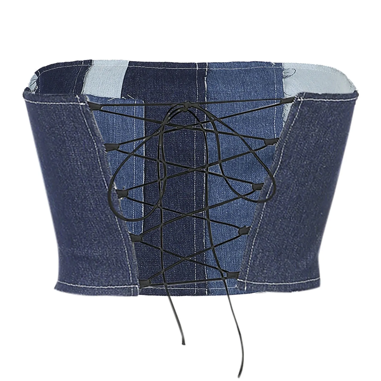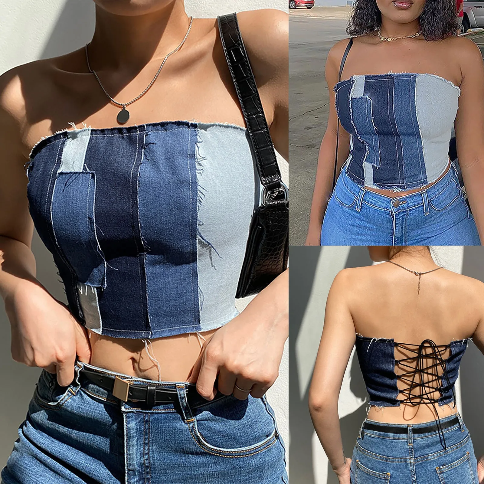 Топ женский джинсовый без рукавов, пикантный бандажный топ-бандо на...